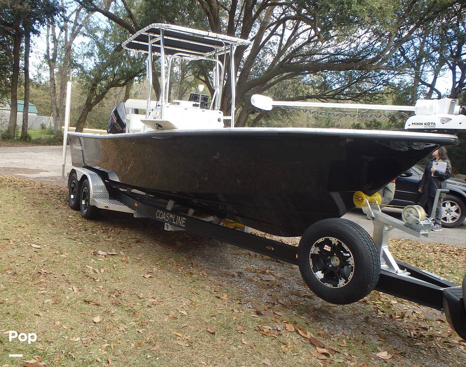 This beauty has a length of 23 feet 8 inches, making it roomy enough for serious inshore or nearshore fishing or day cruising, yet still trailerable. This vessel carries a single 2020 Mercury 250 HP Pro XS Motor with 57 hours mounted on an Atlas Series hydraulic jack plate.