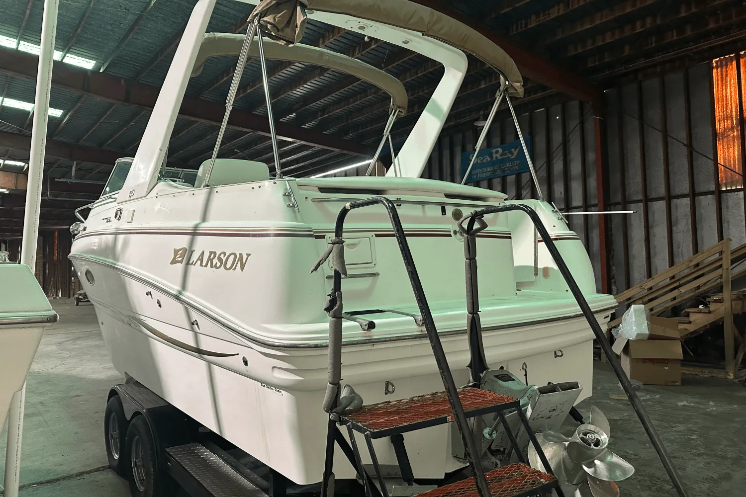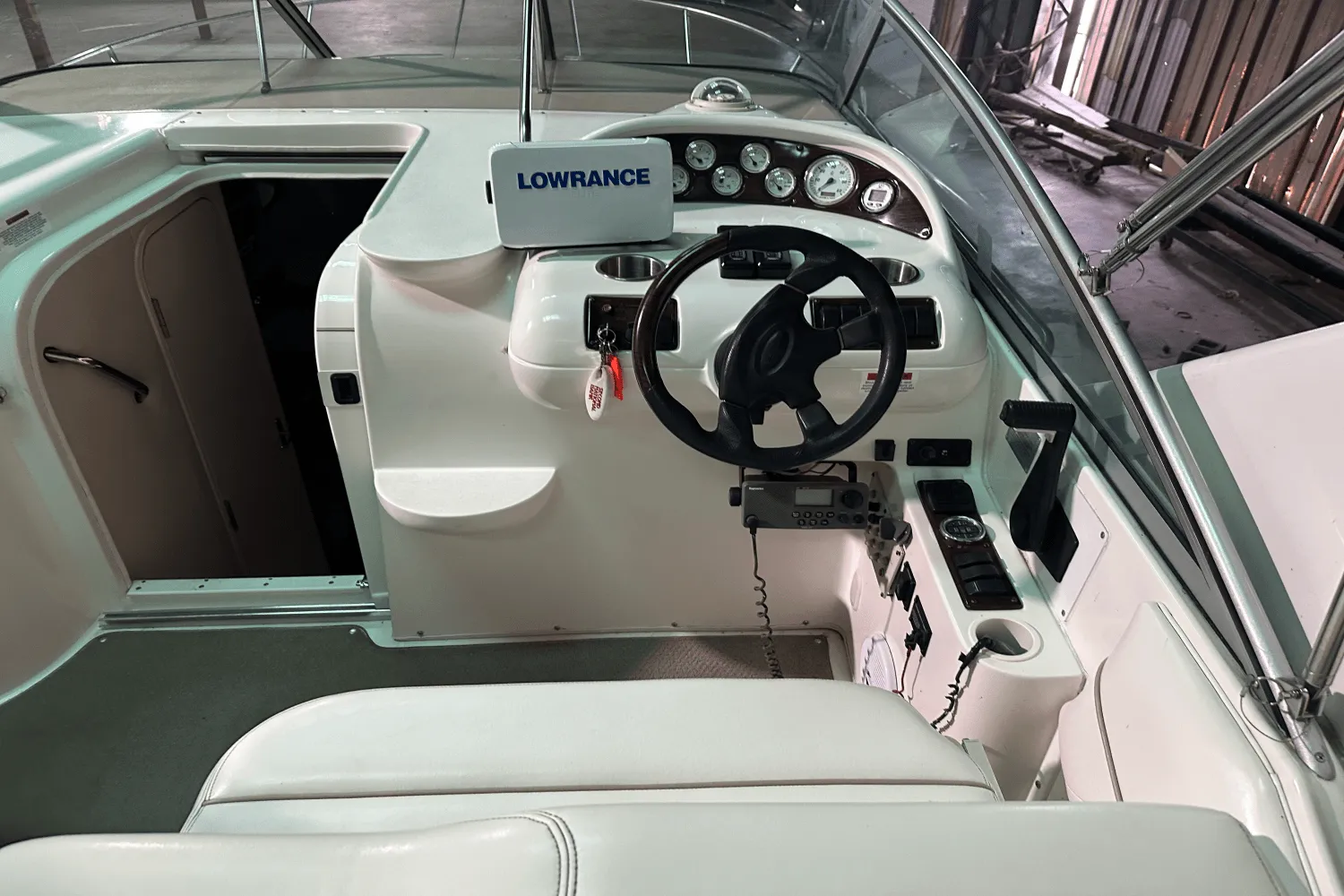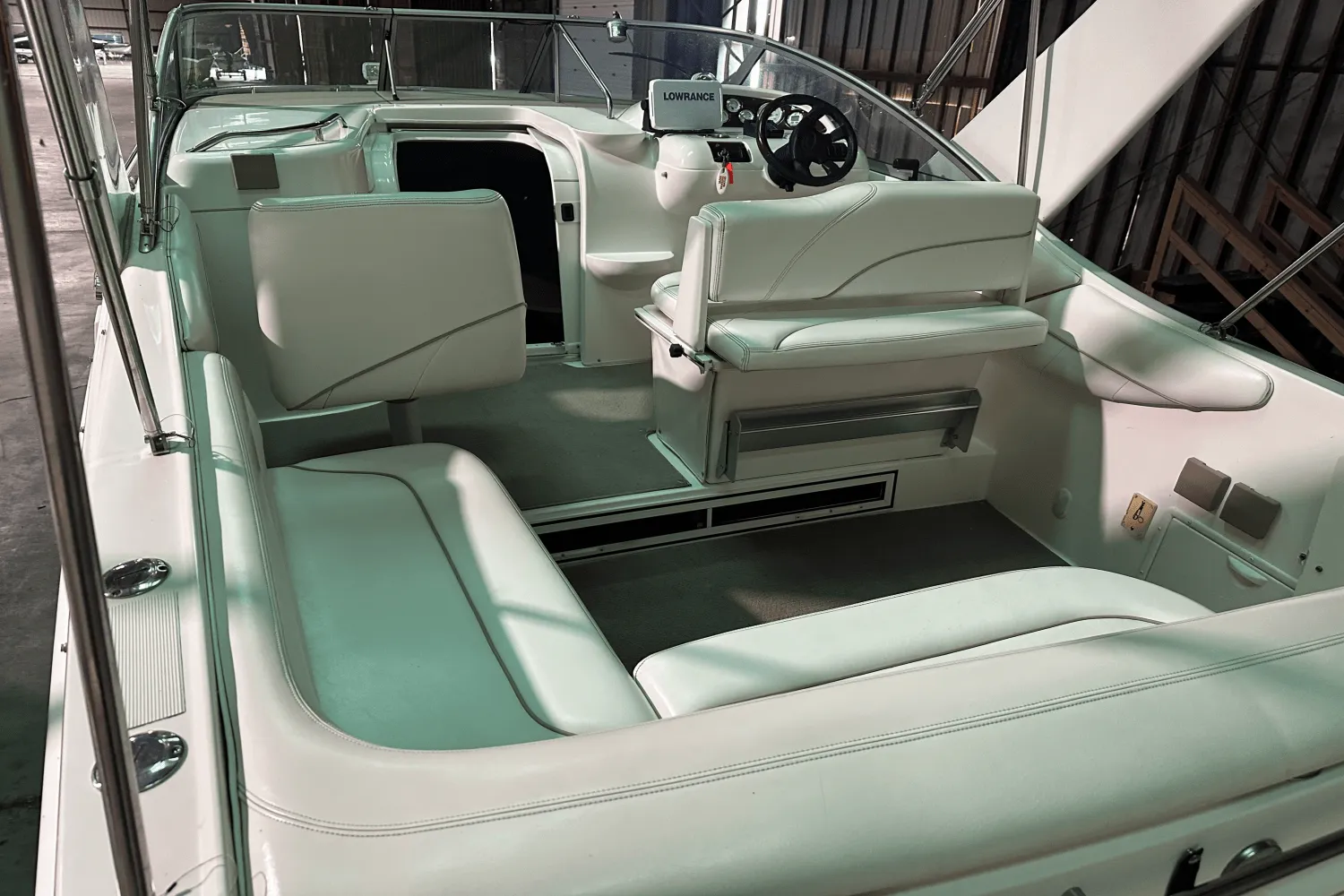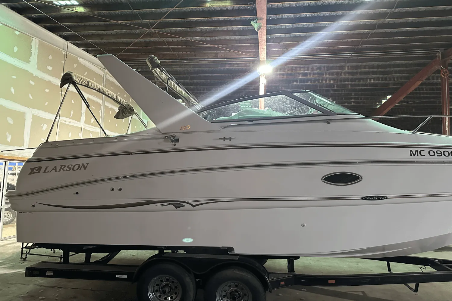 A meticulously maintained 2001 Larson Cabrio 270, the perfect blend of performance, comfort, and style. This 28-foot express cruiser is in exceptionally clean condition and has been well cared for inside and out. Powered by a powerful Volvo Penta engine, it delivers smooth, reliable performance on the water. The spacious cockpit features plush seating, a wet bar, and plenty of room for entertaining, while the well-appointed cabin includes a full galley, enclosed head with shower, and comfortable sleeping accomodations for up to four. whether you are planning weekend getaways or day