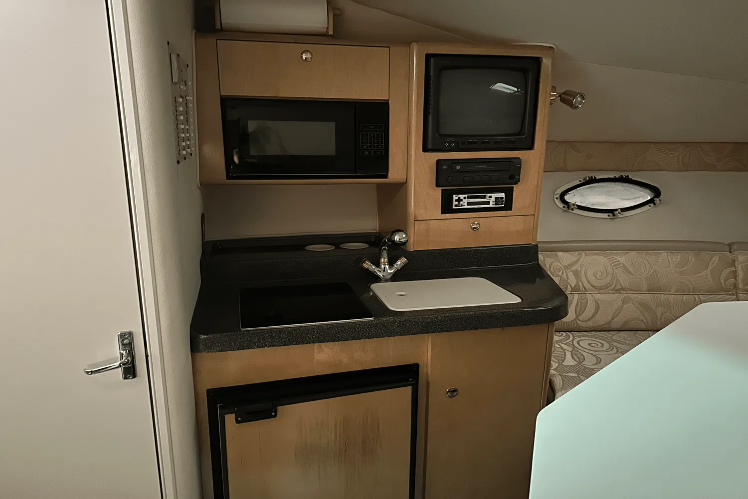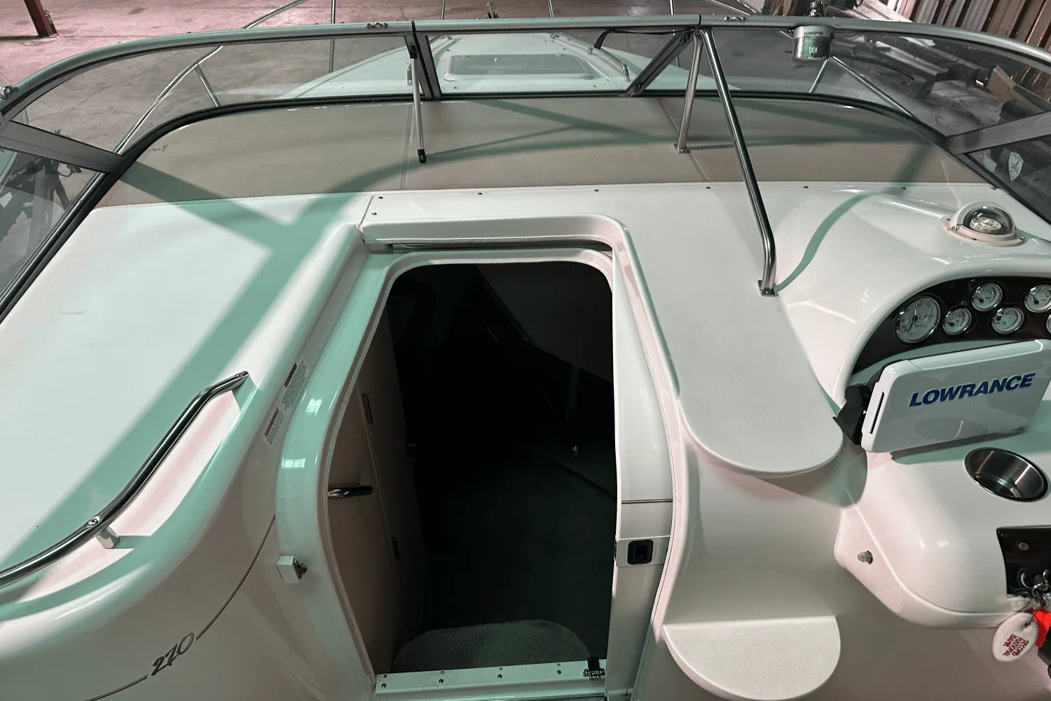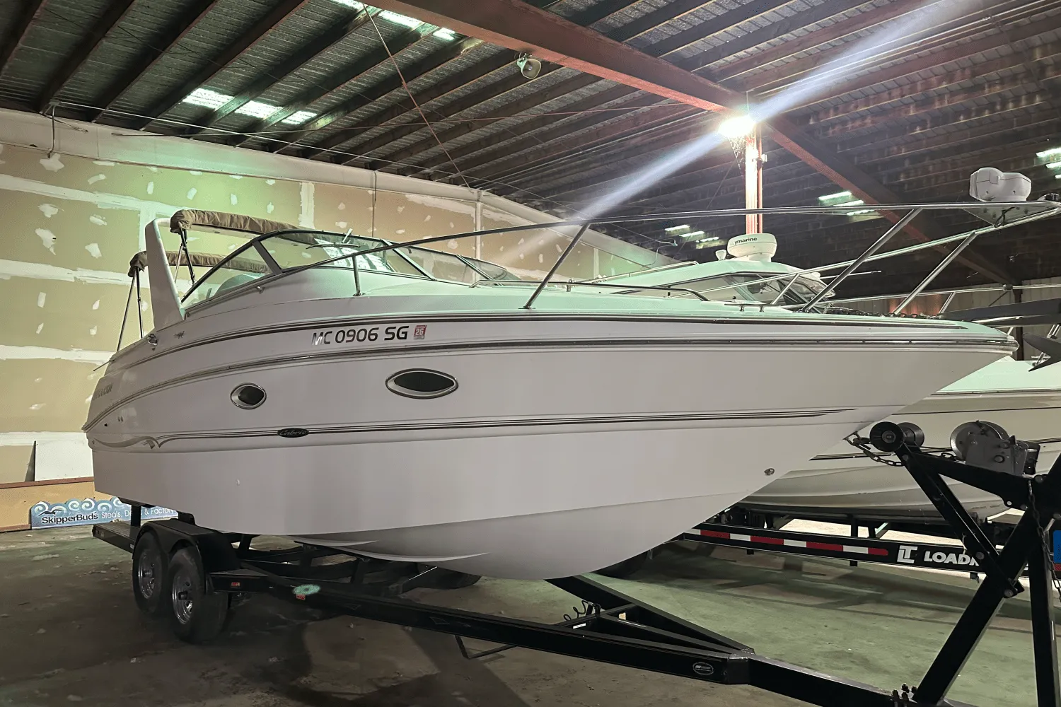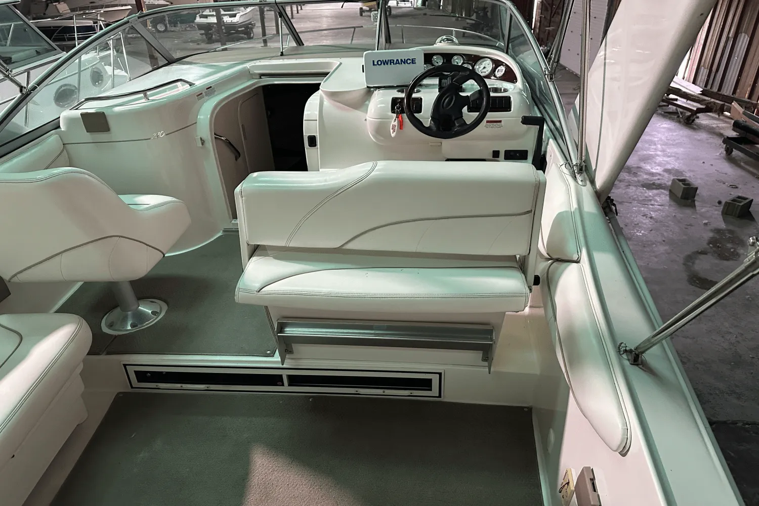 A meticulously maintained 2001 Larson Cabrio 270, the perfect blend of performance, comfort, and style. This 28-foot express cruiser is in exceptionally clean condition and has been well cared for inside and out. Powered by a powerful Volvo Penta engine, it delivers smooth, reliable performance on the water. The spacious cockpit features plush seating, a wet bar, and plenty of room for entertaining, while the well-appointed cabin includes a full galley, enclosed head with shower, and comfortable sleeping accomodations for up to four. whether you are planning weekend getaways or day