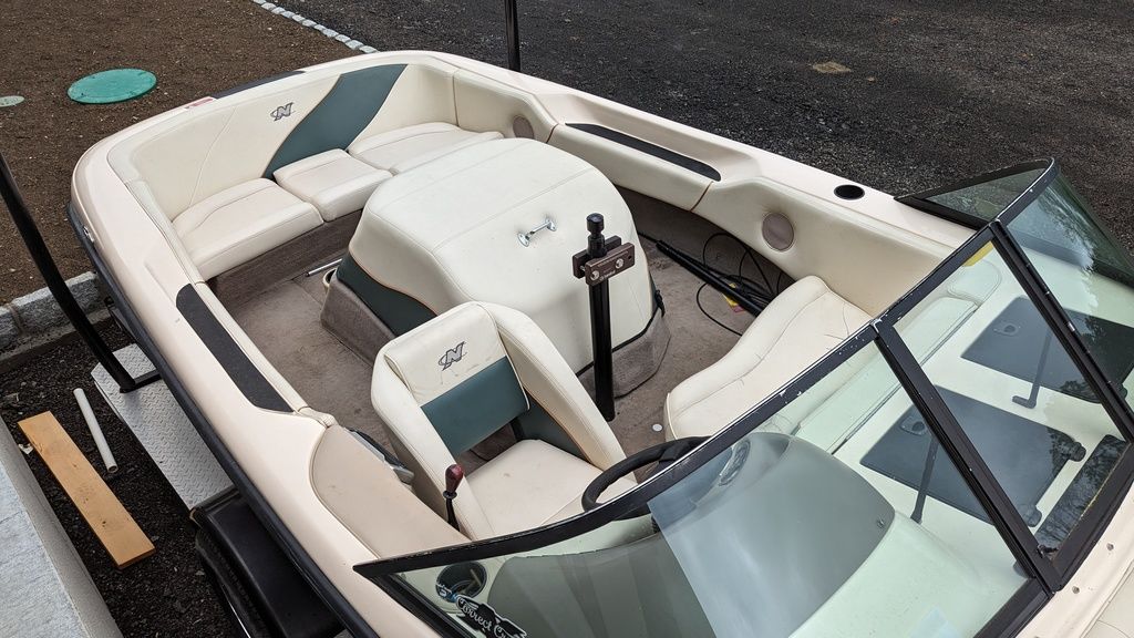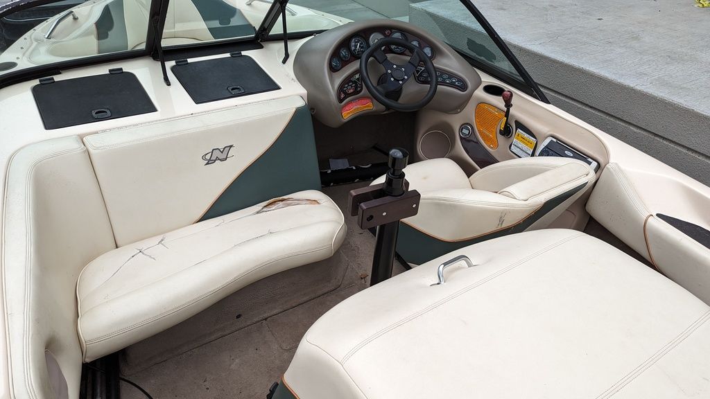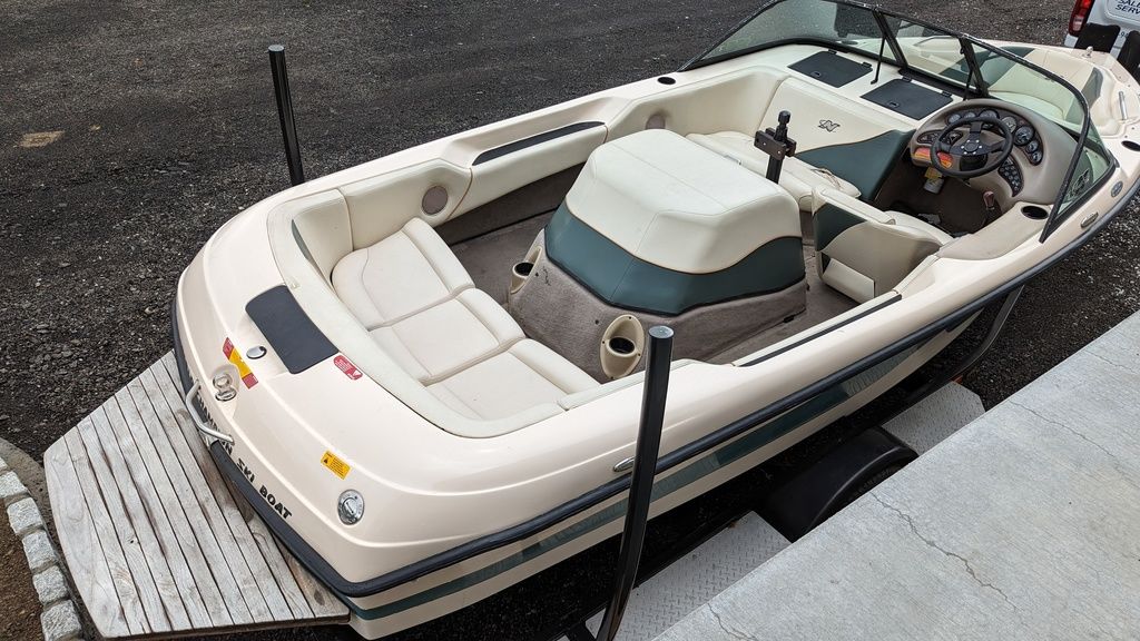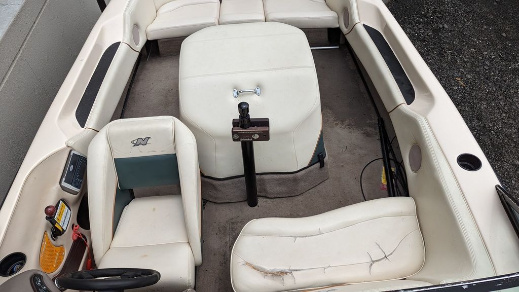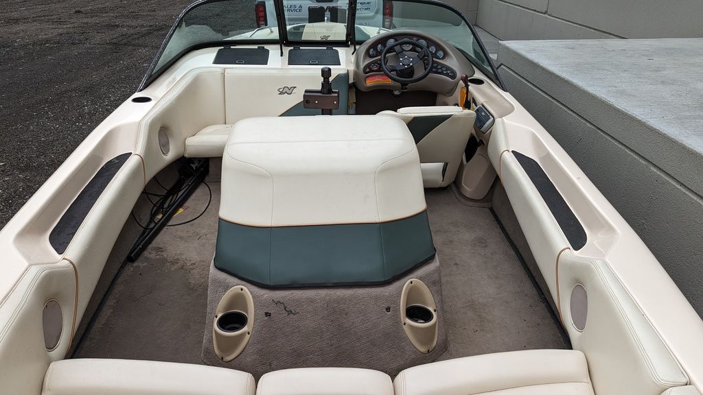 This 2001 Ski Nautique 196 Open Bow has come in on trade to Our dealership after we sold it new in 2001. Our team has handled service and off-season storage for this boat since it was new. The boat was recently evaluated and serviced by our service team. The boat shows some minor scratches and fading at the waterline of the boat, and shows some wear on the upholstery.