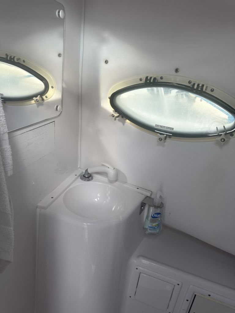 This meticulously maintained Cuddy Cabin Walk around is in great condition and comes fully equipped for your next adventure. Enjoy the thrill of a brand new Suzuki 300HP motor, paired with state-of-the-art electronics including a Simrad NSX9, marine radio, antenna, AM/FM radio, and speakers.