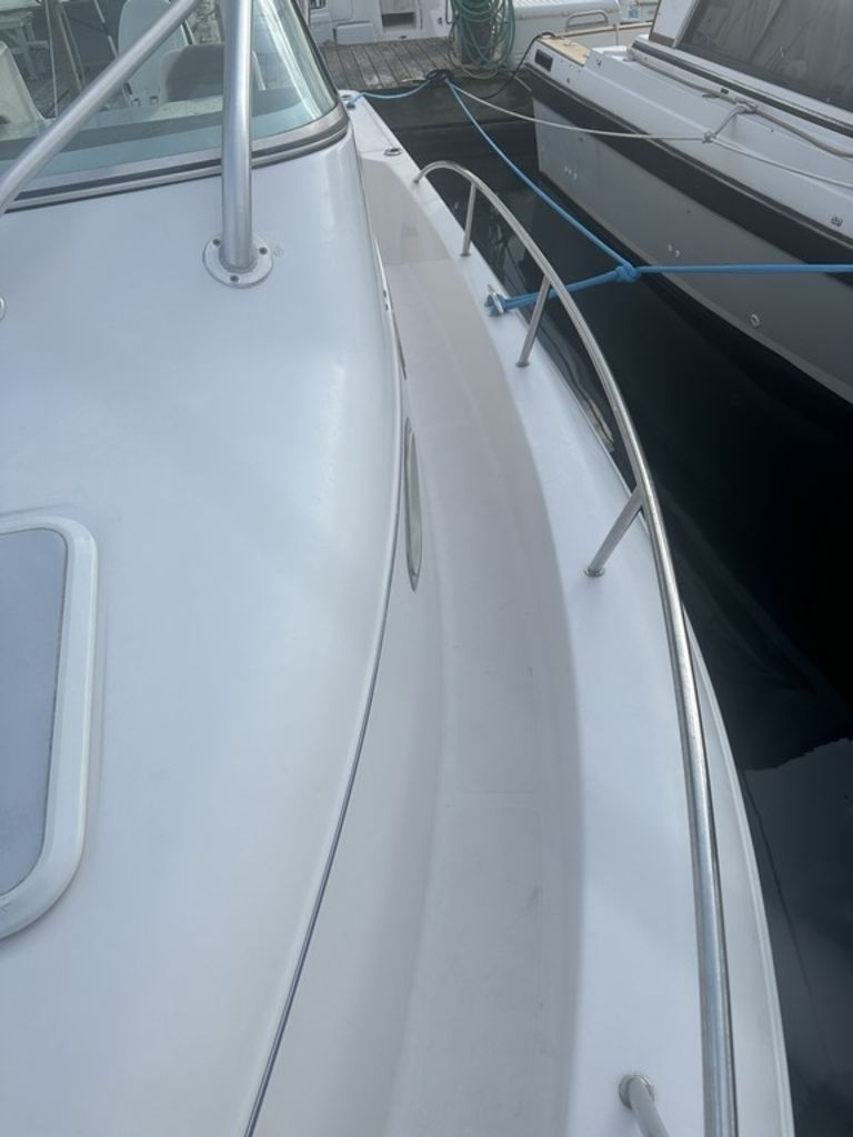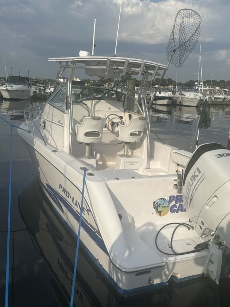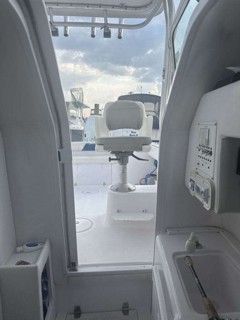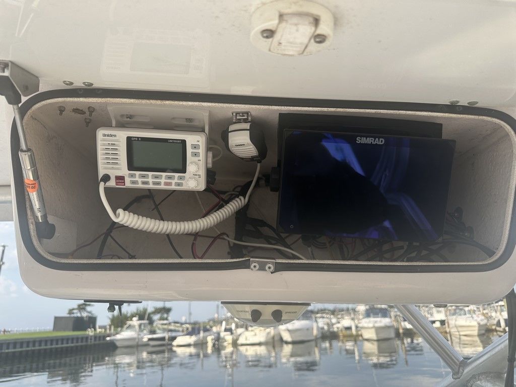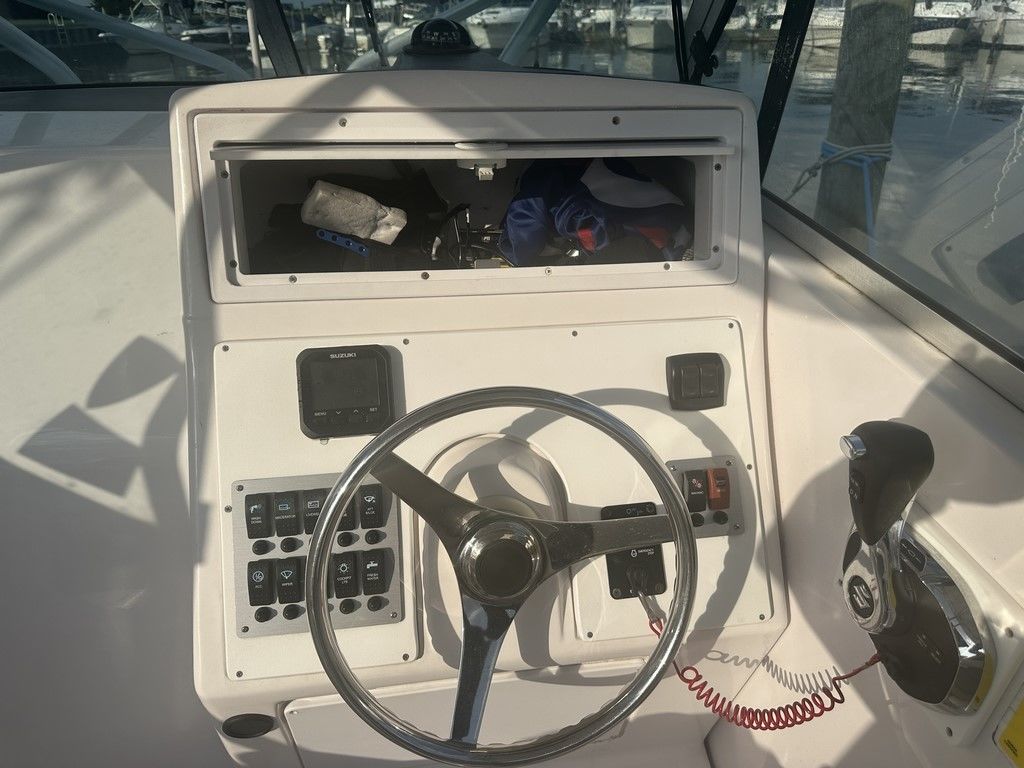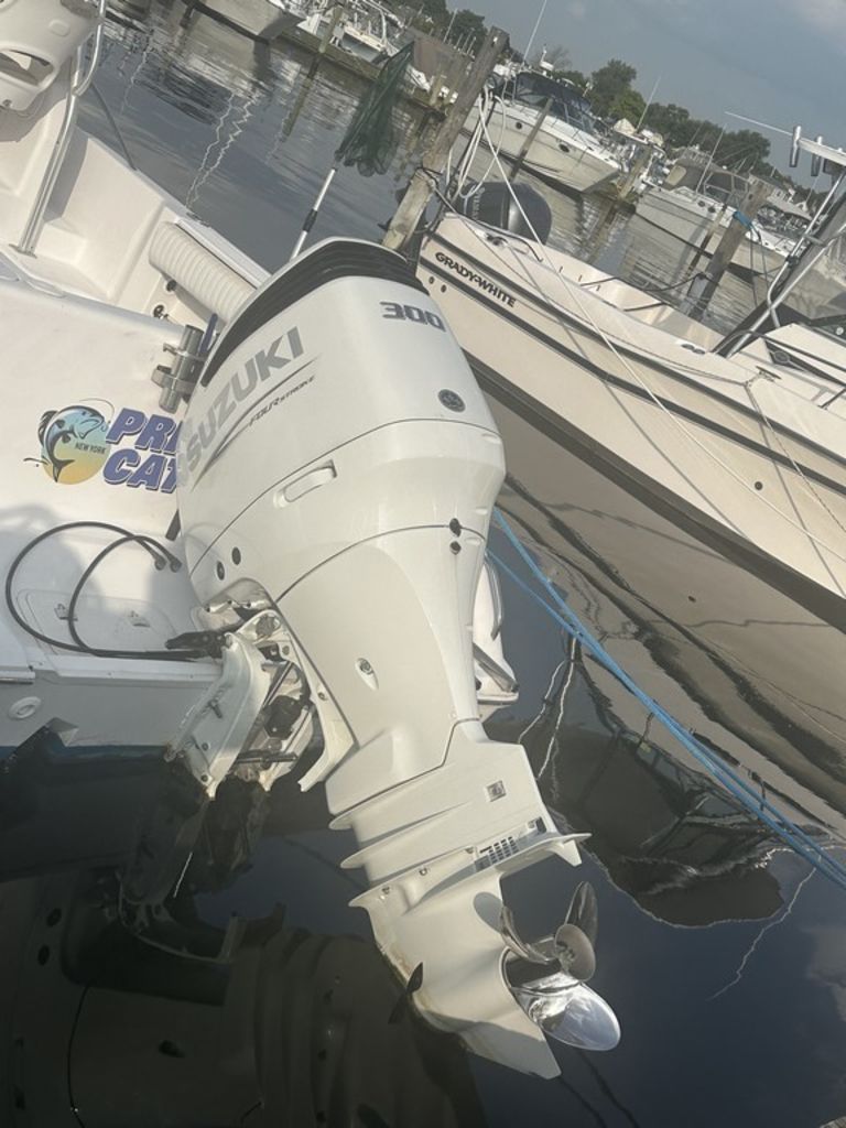 This meticulously maintained Cuddy Cabin Walk around is in great condition and comes fully equipped for your next adventure. Enjoy the thrill of a brand new Suzuki 300HP motor, paired with state-of-the-art electronics including a Simrad NSX9, marine radio, antenna, AM/FM radio, and speakers.