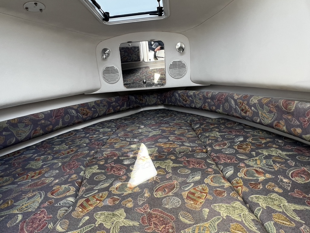 Sleeper Cabin: Comfortable sleeping area for overnight stays or relaxing between fishing trips