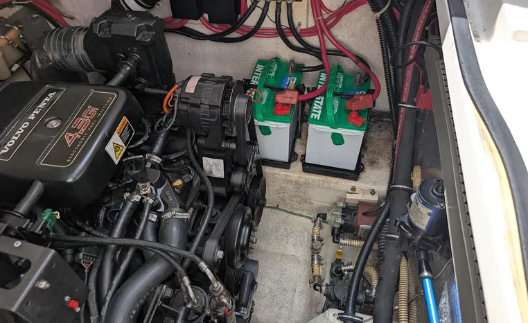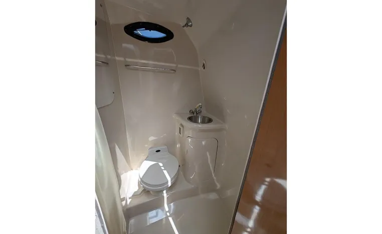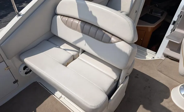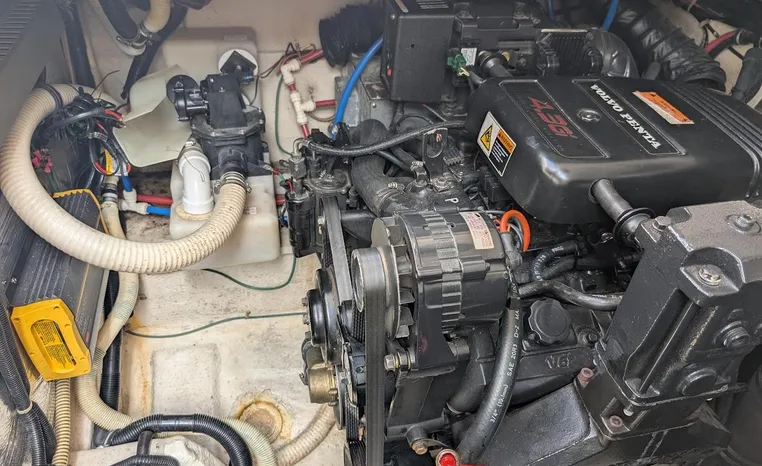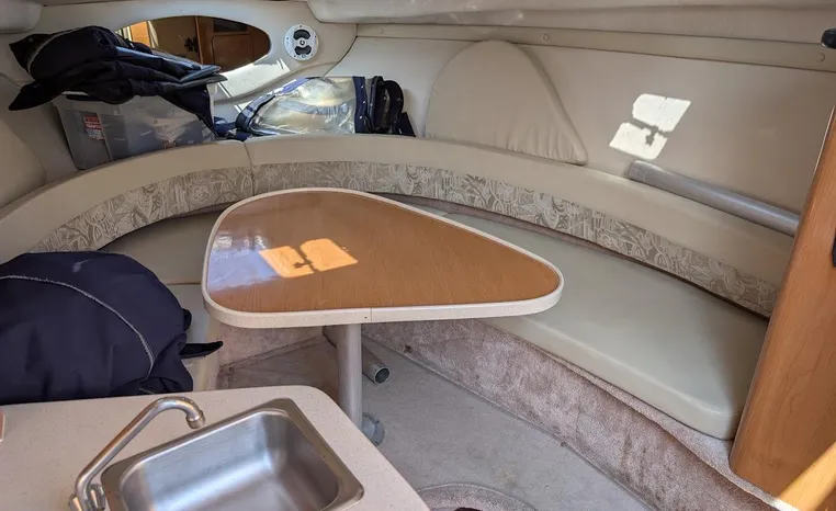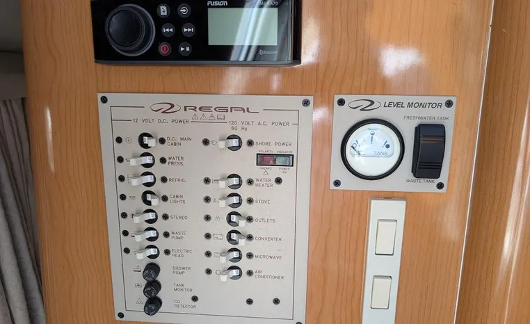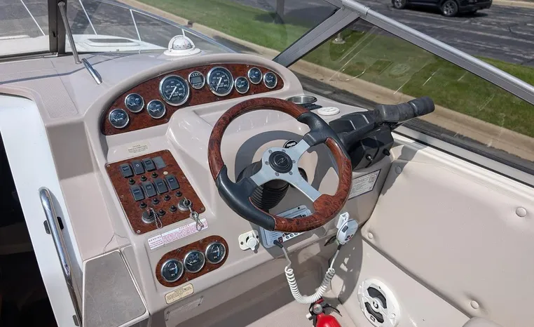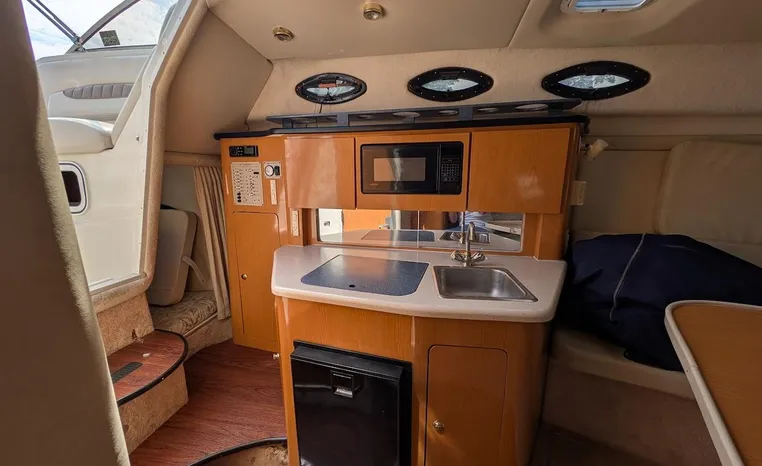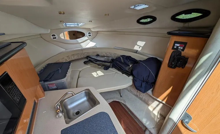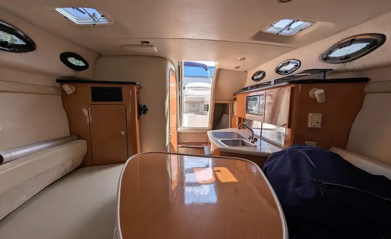 Tandem Axle Trailer included! Twin Volvo V-6's. Luxurious, sporty and spacious, this Regal 2660 Commodore also features the option of trailering to your summer destinations! The cockpit is neatly arranged with a large companion lounge -- with reversible seating -- bucket helm and comfortable aft bench. The cabin layout features a traditional vberth/dinette lounge, plus galley and mid-cabin.