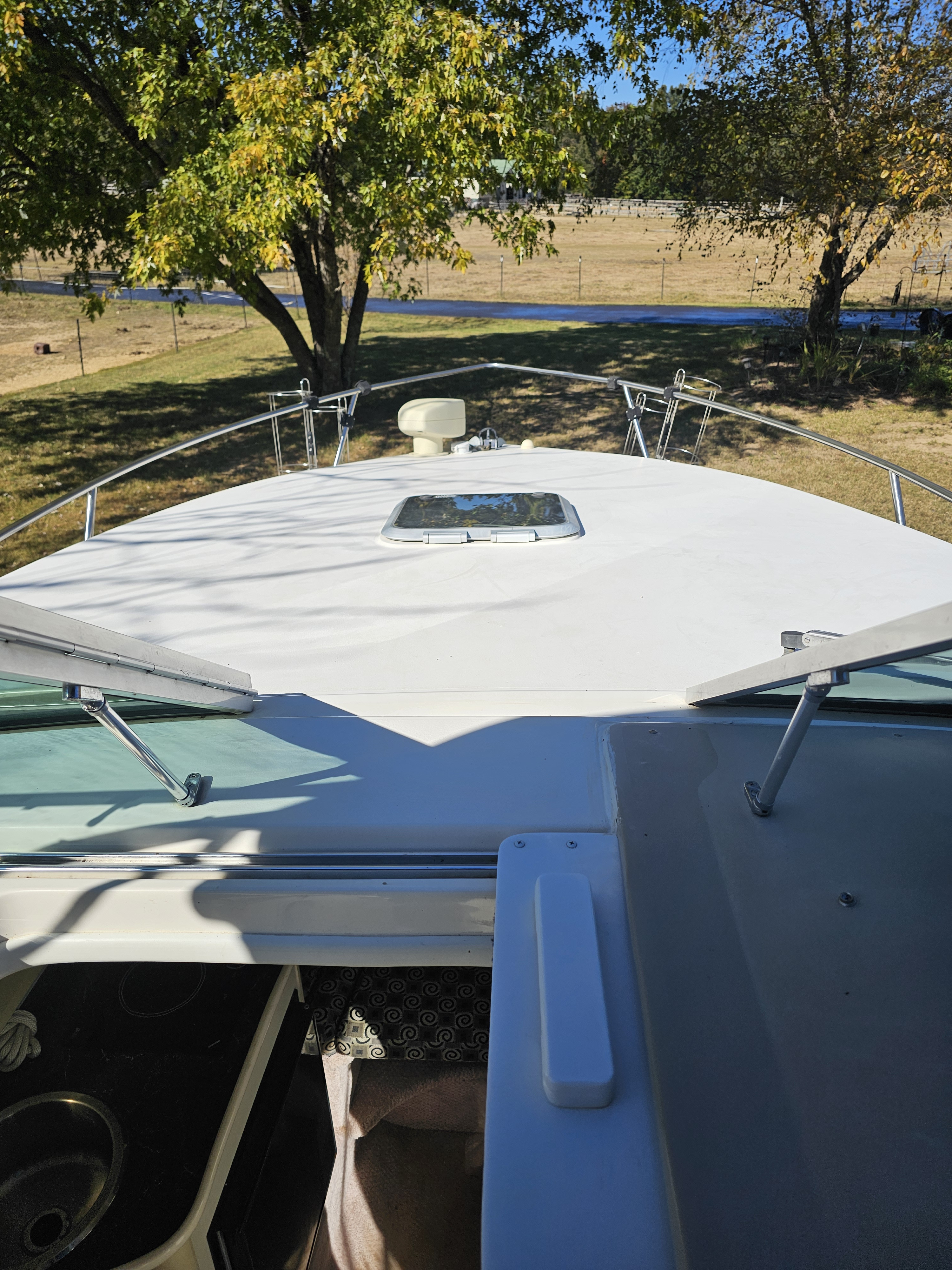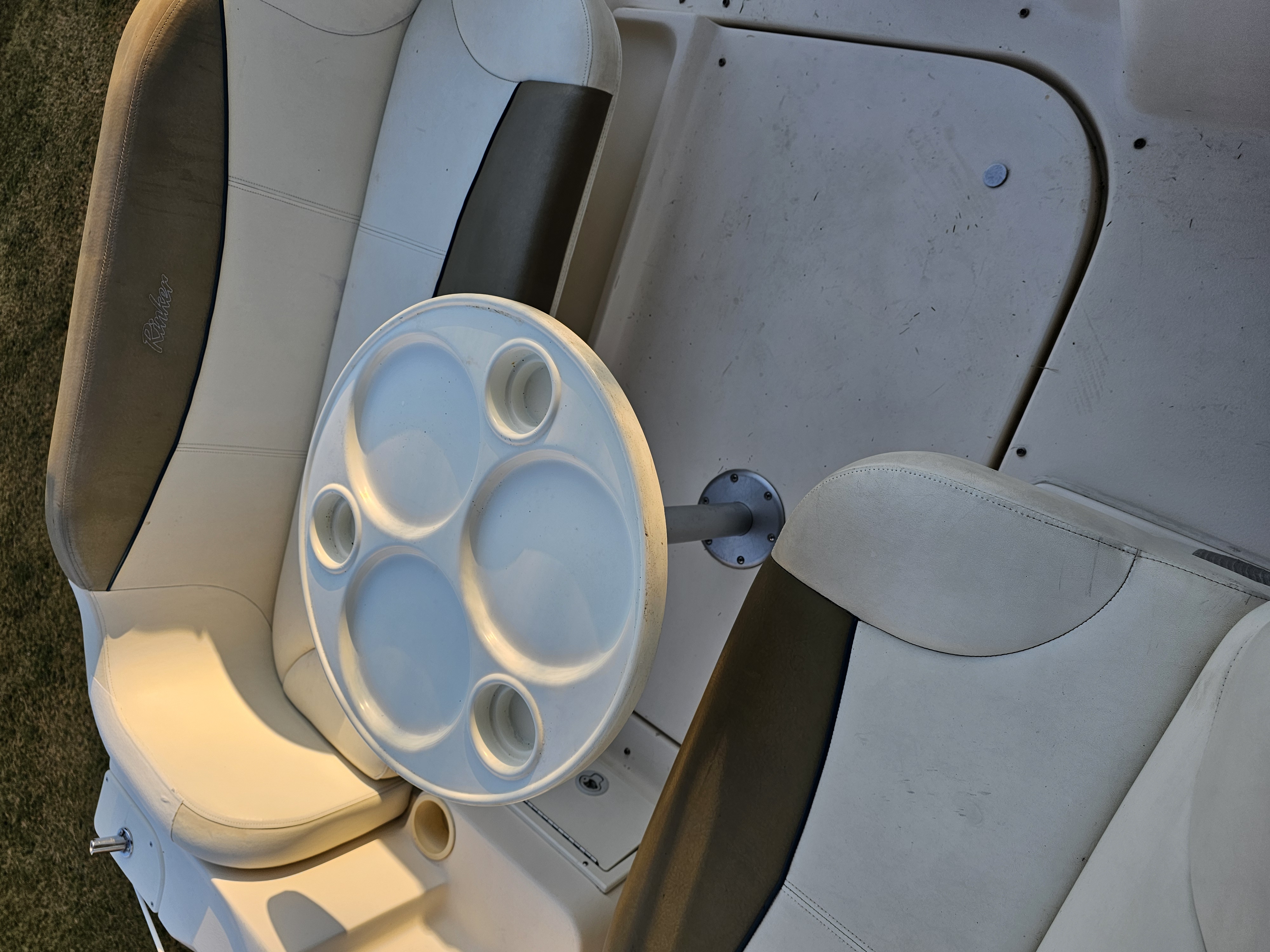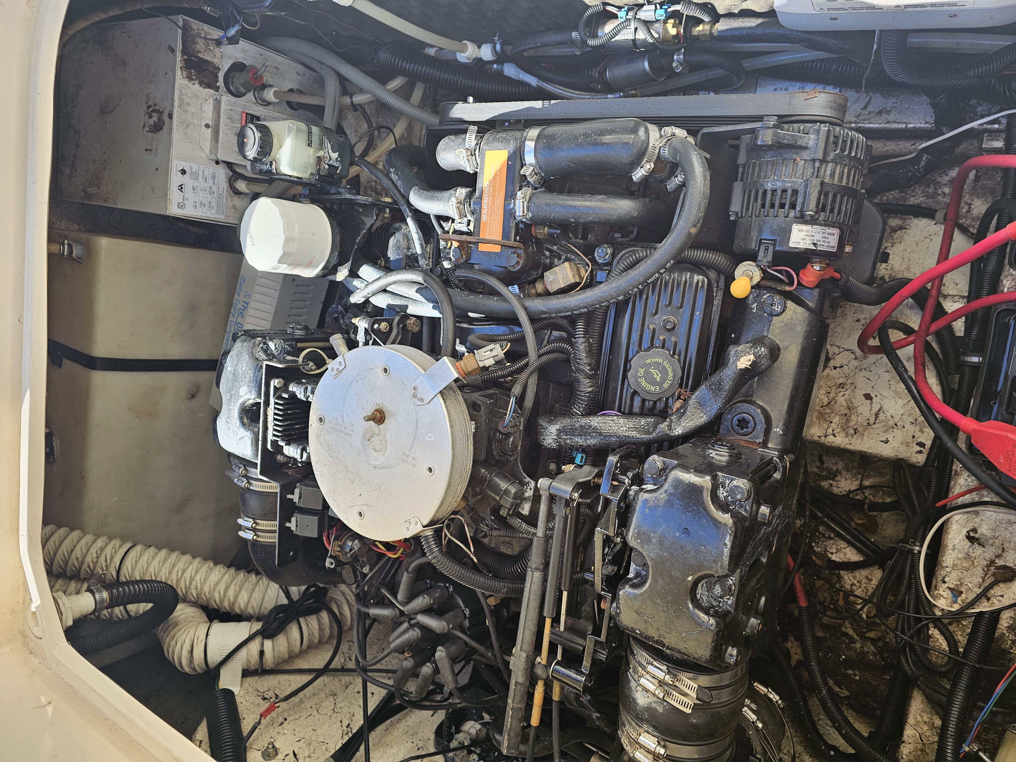 Trailer-able weekender, 24.5 ft Cuddy with 8'6 beam, it is legal to tow but yet has the room on the inside for a great boat to stay on with all the amenities of a larger boat. Swim platform and ladder. Ample seating and new Sunbrella Bimini Top and new Sunbrella full camper cover. V-berth with new bottom paint, full private head and shower. Bed in galley area and full underfloor bed. Powered by a 5.0 EFI Mercruiser with fully serviced Alpha one outdrive with just 214 hours Full of accessories: Twin batteries with charger/conditioner, microwave, refrigerator, stovetop, sink with hot water. Water and Waste tanks with hot water heater. Engine heater. Hummingbird Helix 9 GPS/Sonar. Spare 4 Blade SS Prop. Bennett Marine Auto Trim Pro GPS based automated Trim Tab system. Have uninstalled Cabin AC. Have all parts but don't know condition. https://youtu.be/CruJRMOoAAg?si=1BwUIWXEMe5smwoW Very rugged 2004 Loadmaster Aluminum trailer with 5 new loadrange D tires. Fully serviced April 2025, Oil and filters, outdrive impeller and all bellows, shift cable and seal kits all new. Runs perfect.