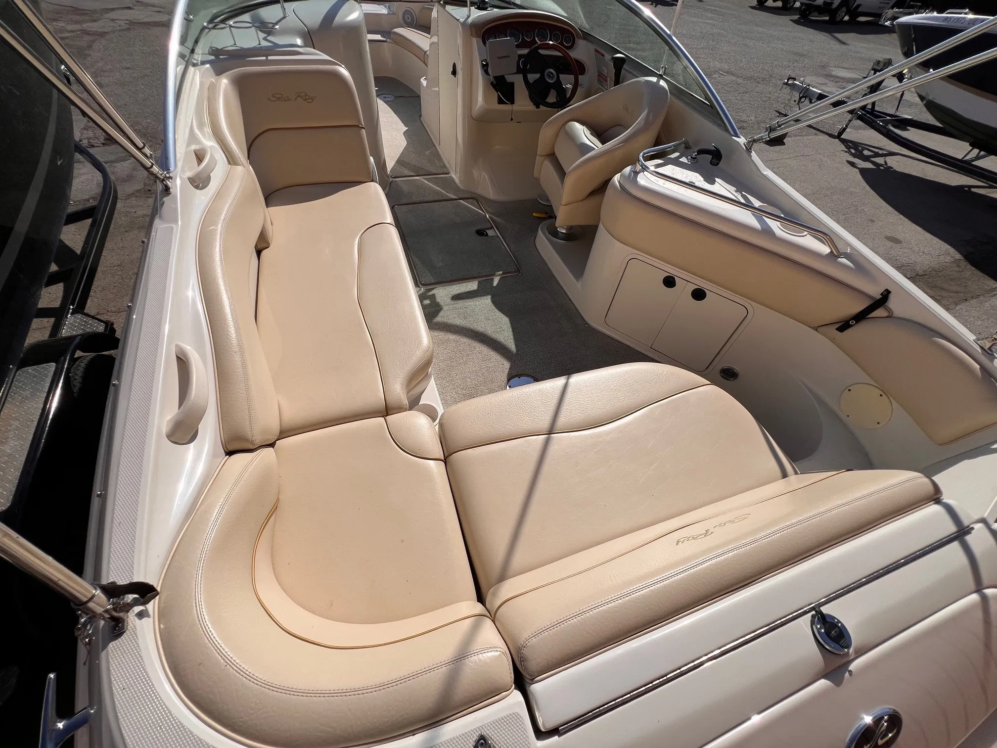 This 2001 Sea Ray 240 Sundeck is a spacious, well-kept open bow beauty powered by a 6.2L Mercury 330 HP engine with a Bravo 3 drive and 650 hours. Designed for entertaining, it comfortably seats 12+ people and includes a convenient head compartment for long days on the water. Updates include new carpet and a new mooring cover, plus modern electronics with a Garmin GPS and Raymarine radio. The boat has always been stored in indoor heated storage, ensuring excellent condition year after year. A tandem axle trailer is included, making transport and storage easy. This is a great opportunity to own one of Sea Ray’s most popular models in turn key condition, ready for family fun and cruising alike.