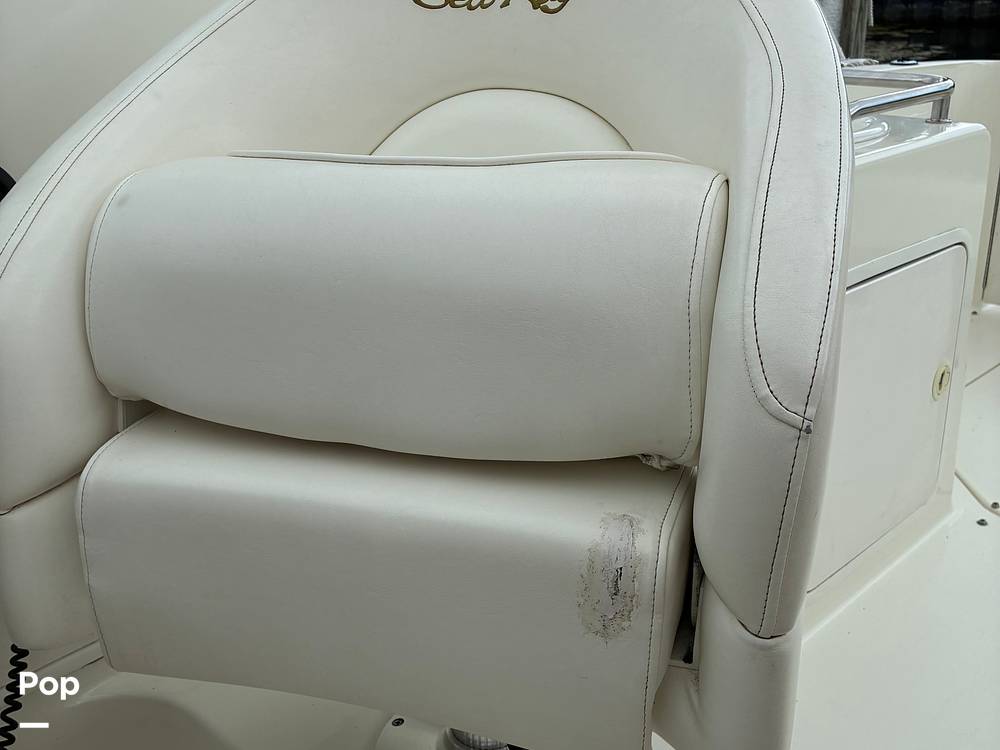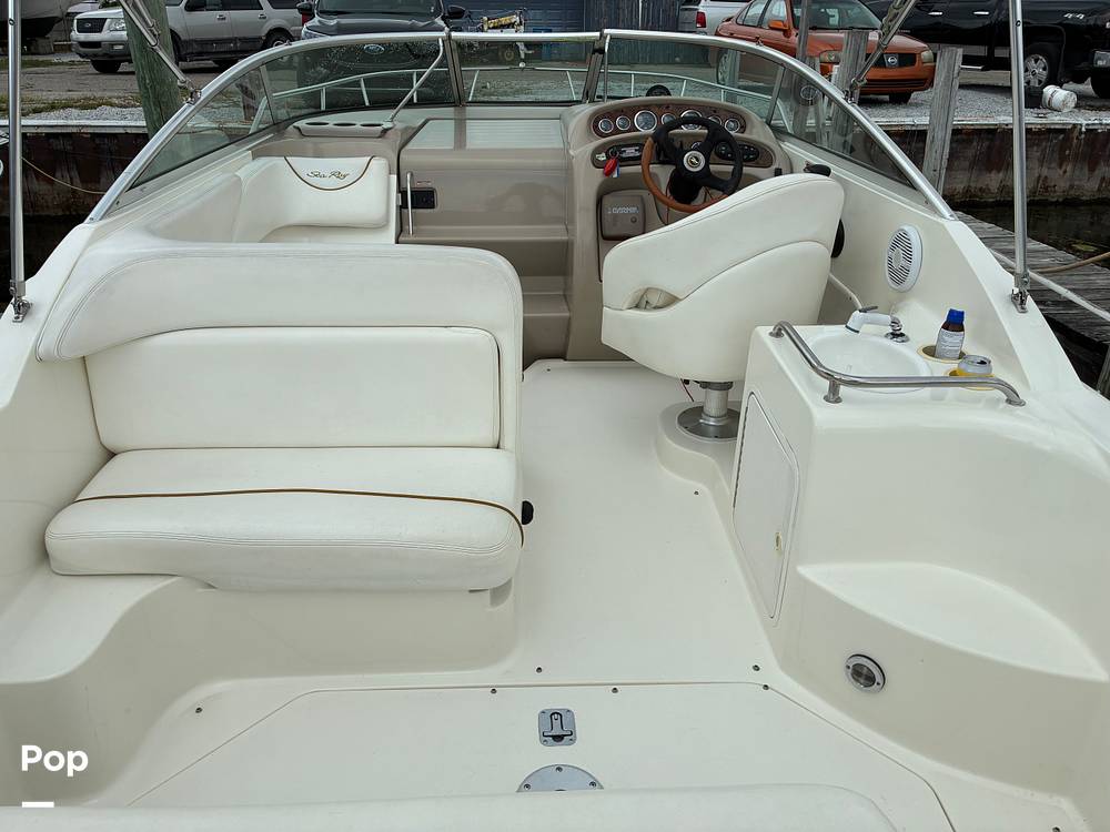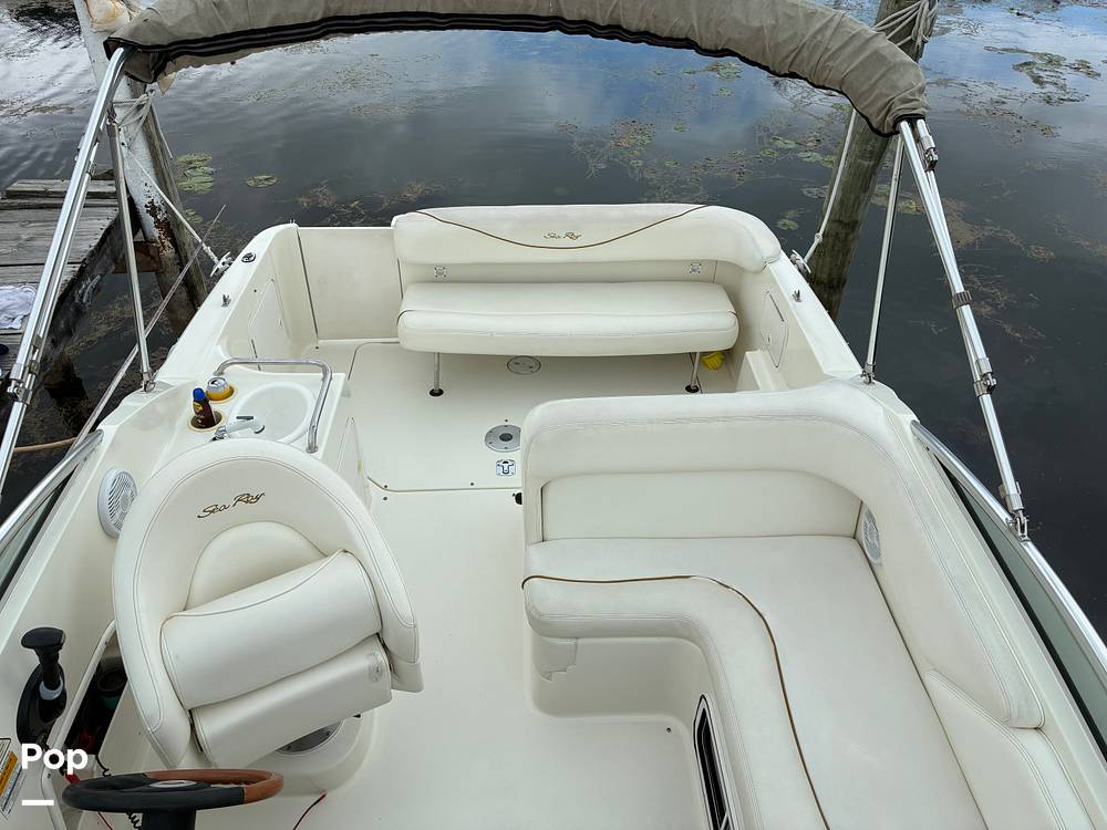 The Sea Ray has plenty of seating in the deck and cockpit are and sleeps 6 for overnight stays. The cockpit and helm area has plenty of seating and entertaining area, sink, snap-in carpet, large swim platform with ladder.