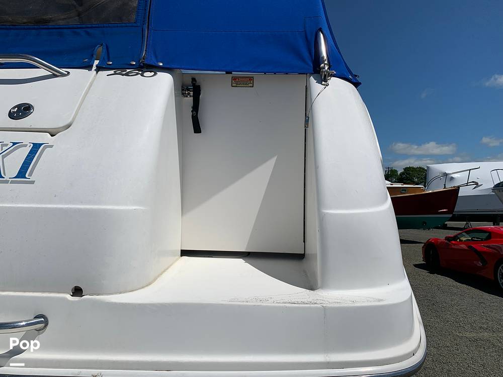 You enter from the generously sized swim platform through a walkthrough transom door into a spacious cockpit with ample seating. To starboard is a wet bar and a built-in cooler space.