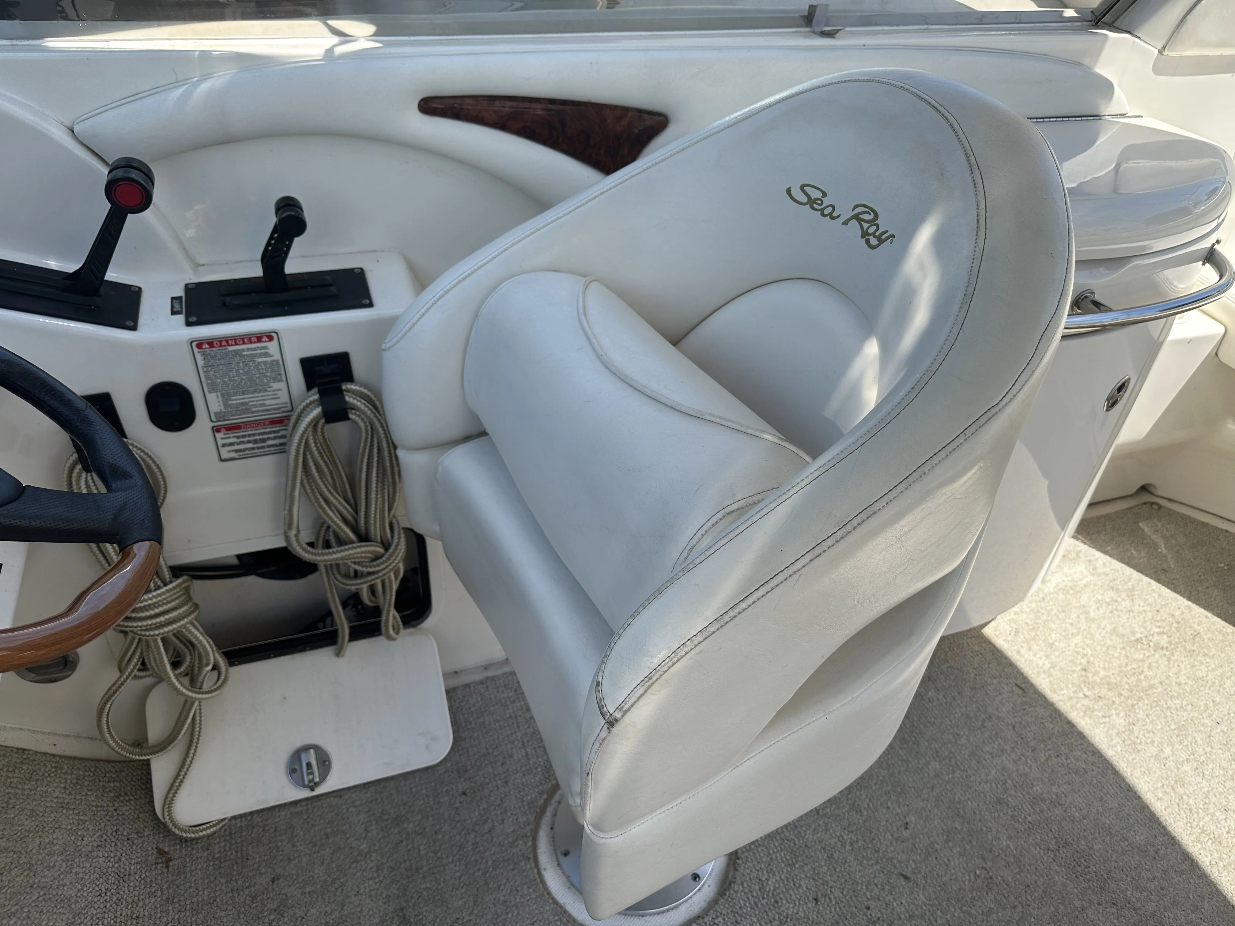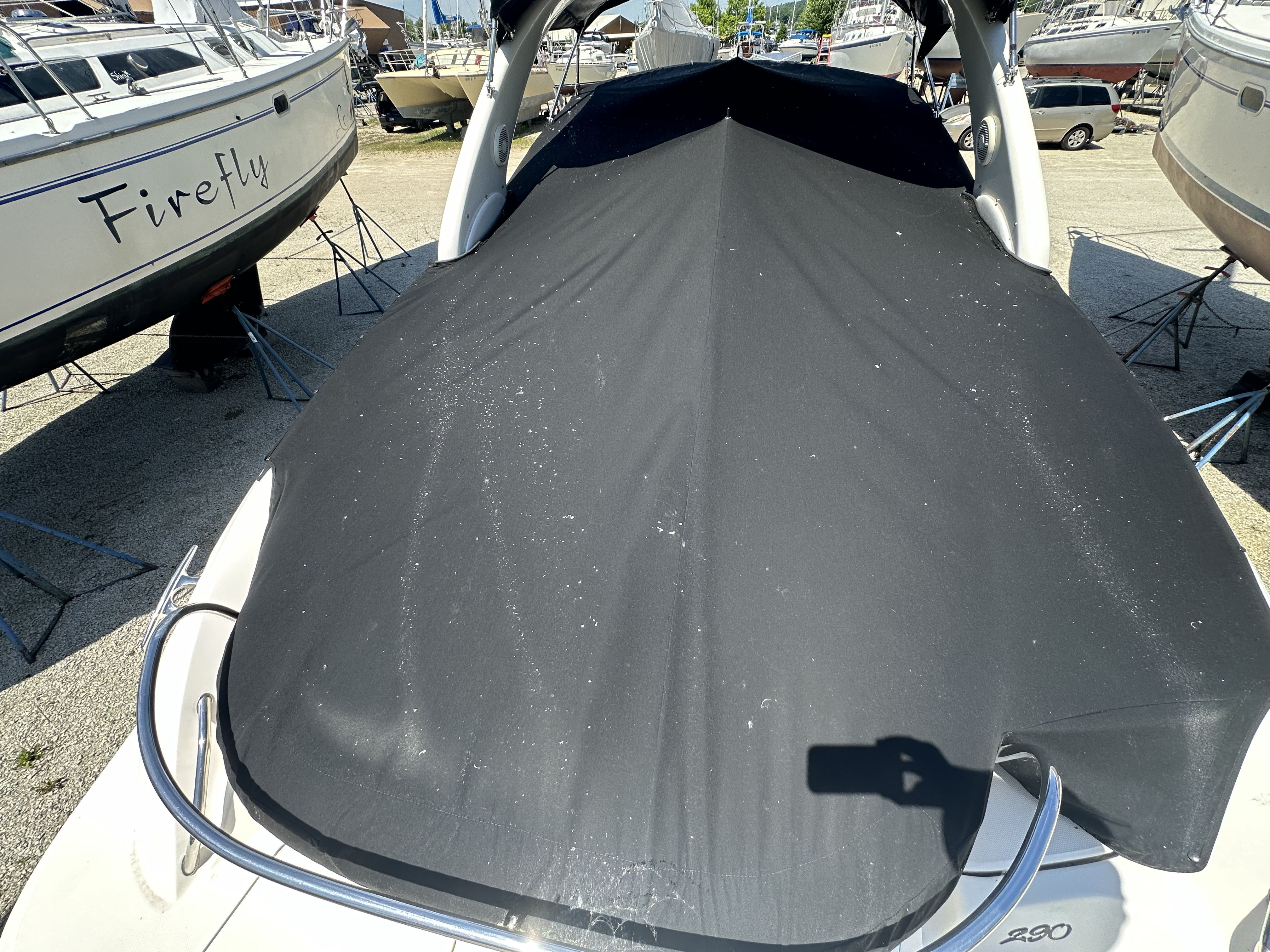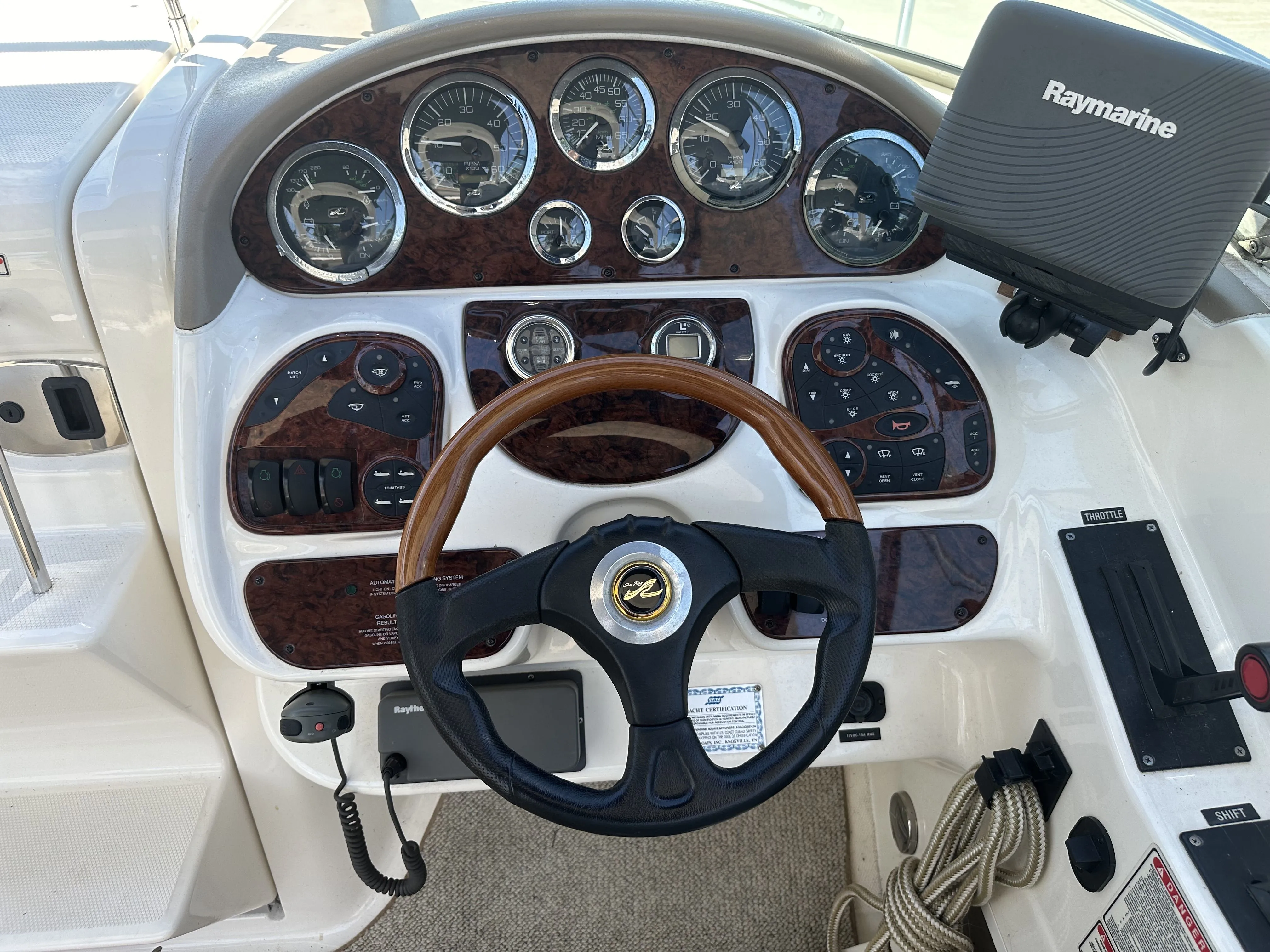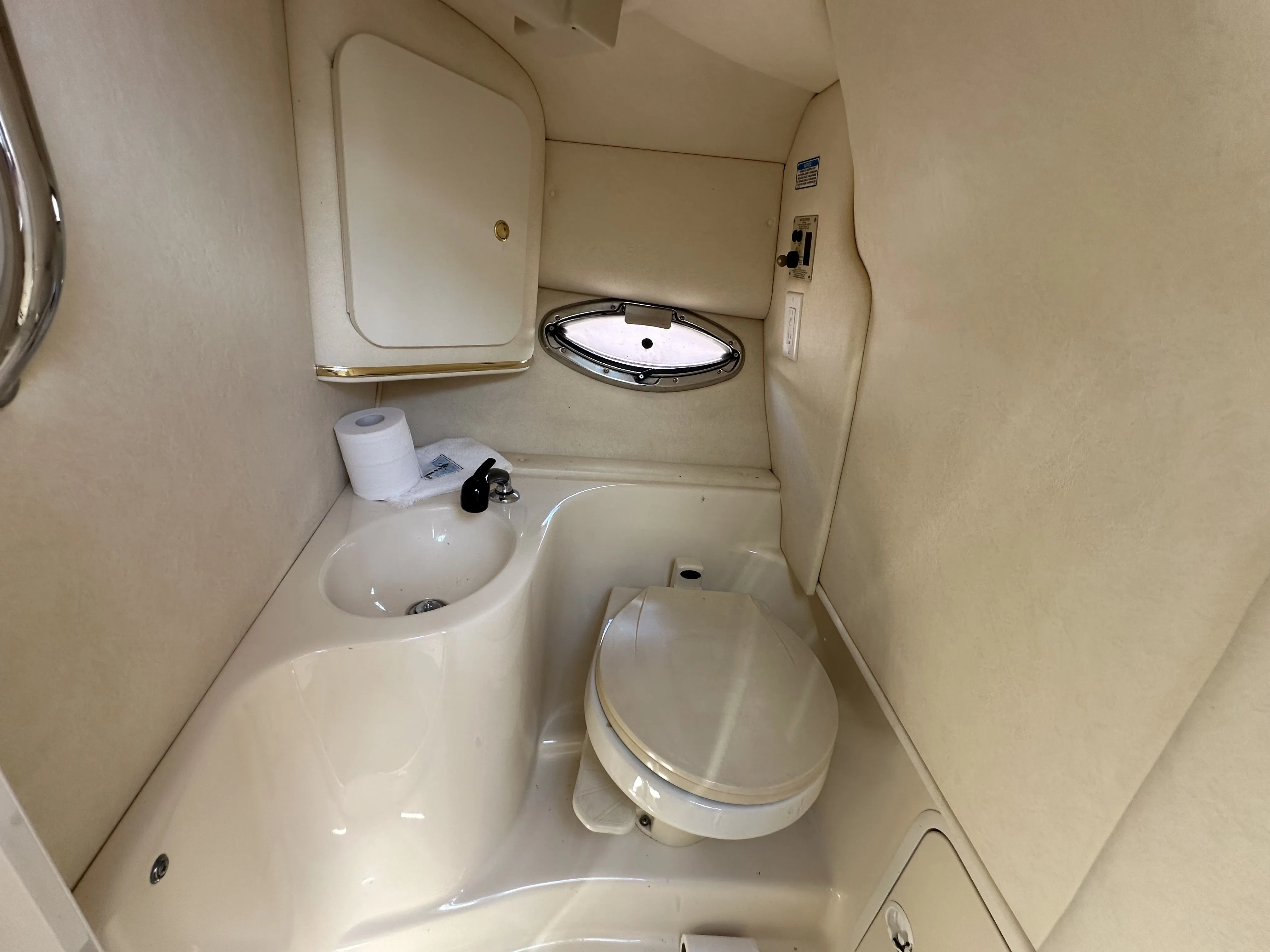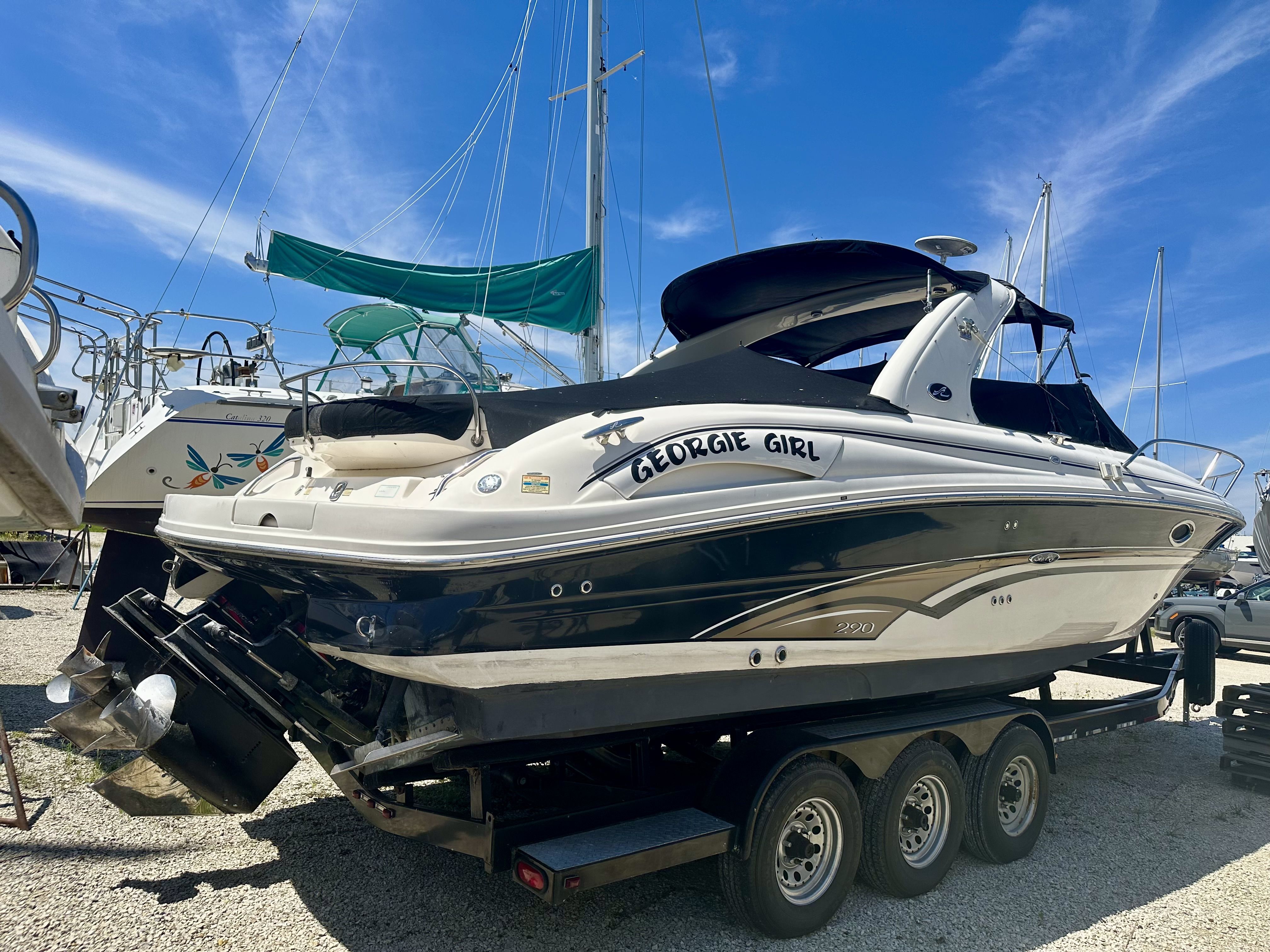 Highlights include separate enclosed vacuflush head, electric windlass, and on board refrigerator. Incredible seating topside with large aft sunpad. Other recent improvements are the Raymarine GPS and bottom paint. Repowered in 2017 port / 2024 stbd. The Mercruiser 5.7EFI BII Engines have had limited use. The boat has approx 870 hours on it total. Trailer included. Call to schedule showing today! Trades considered.