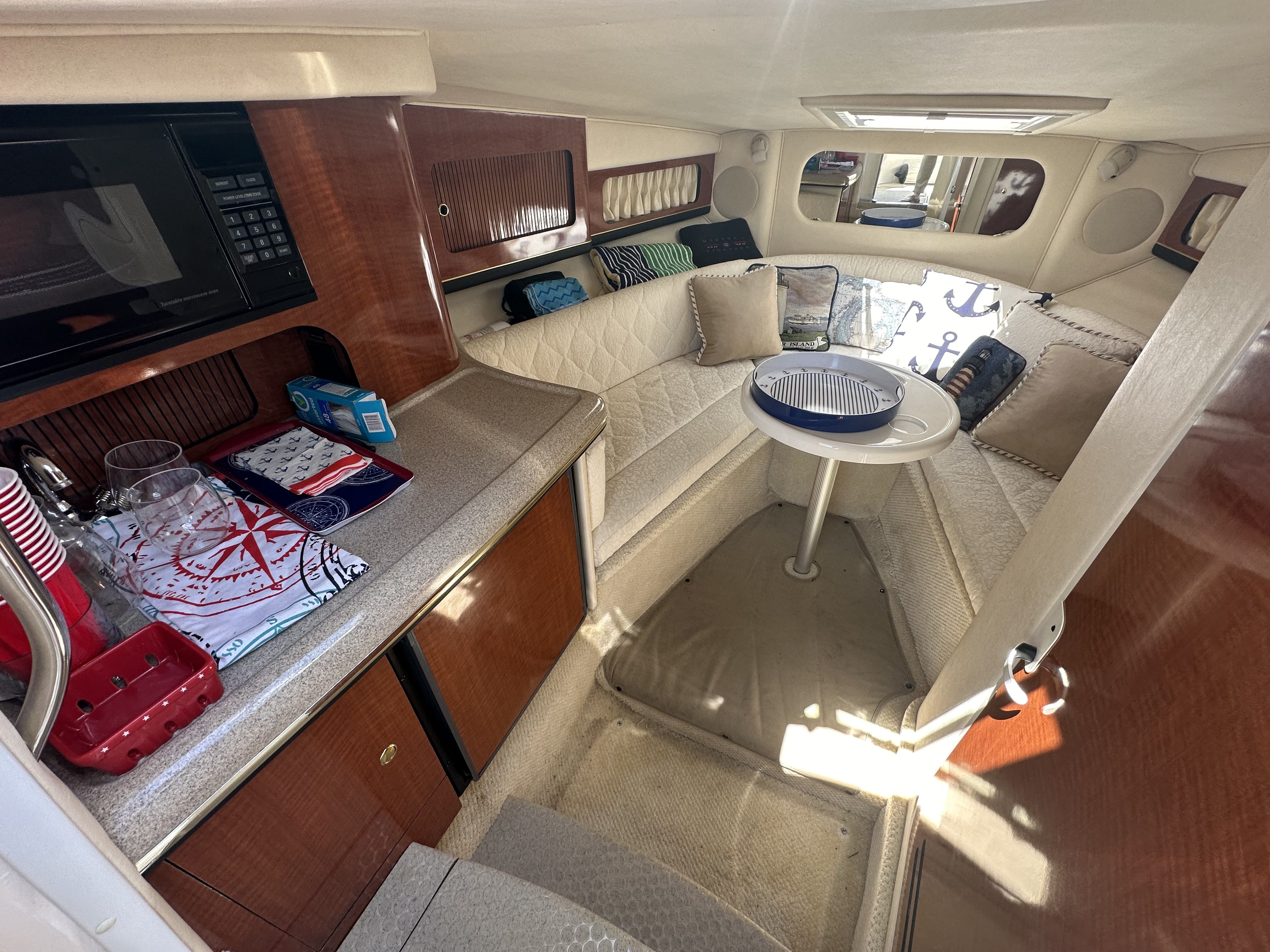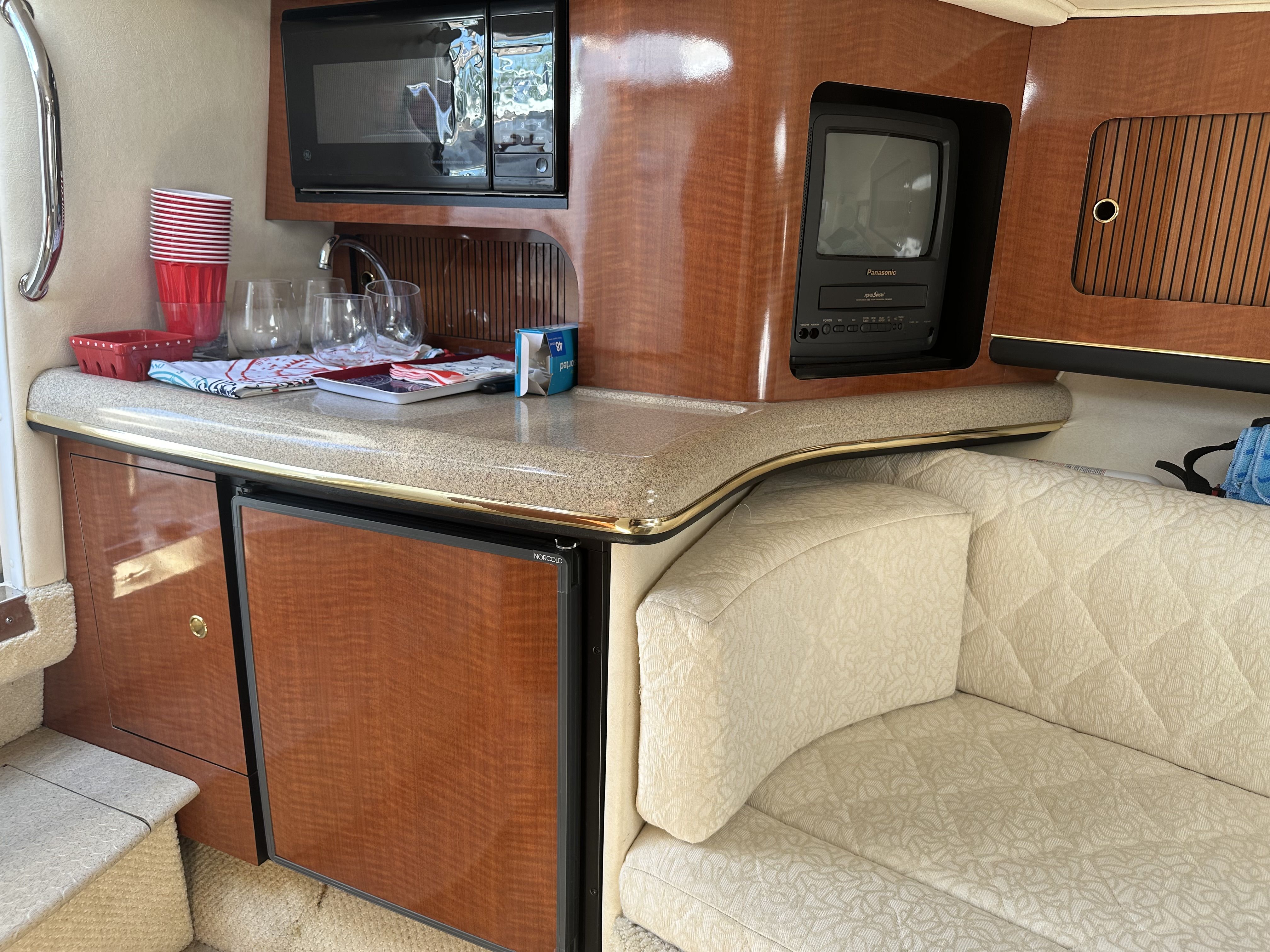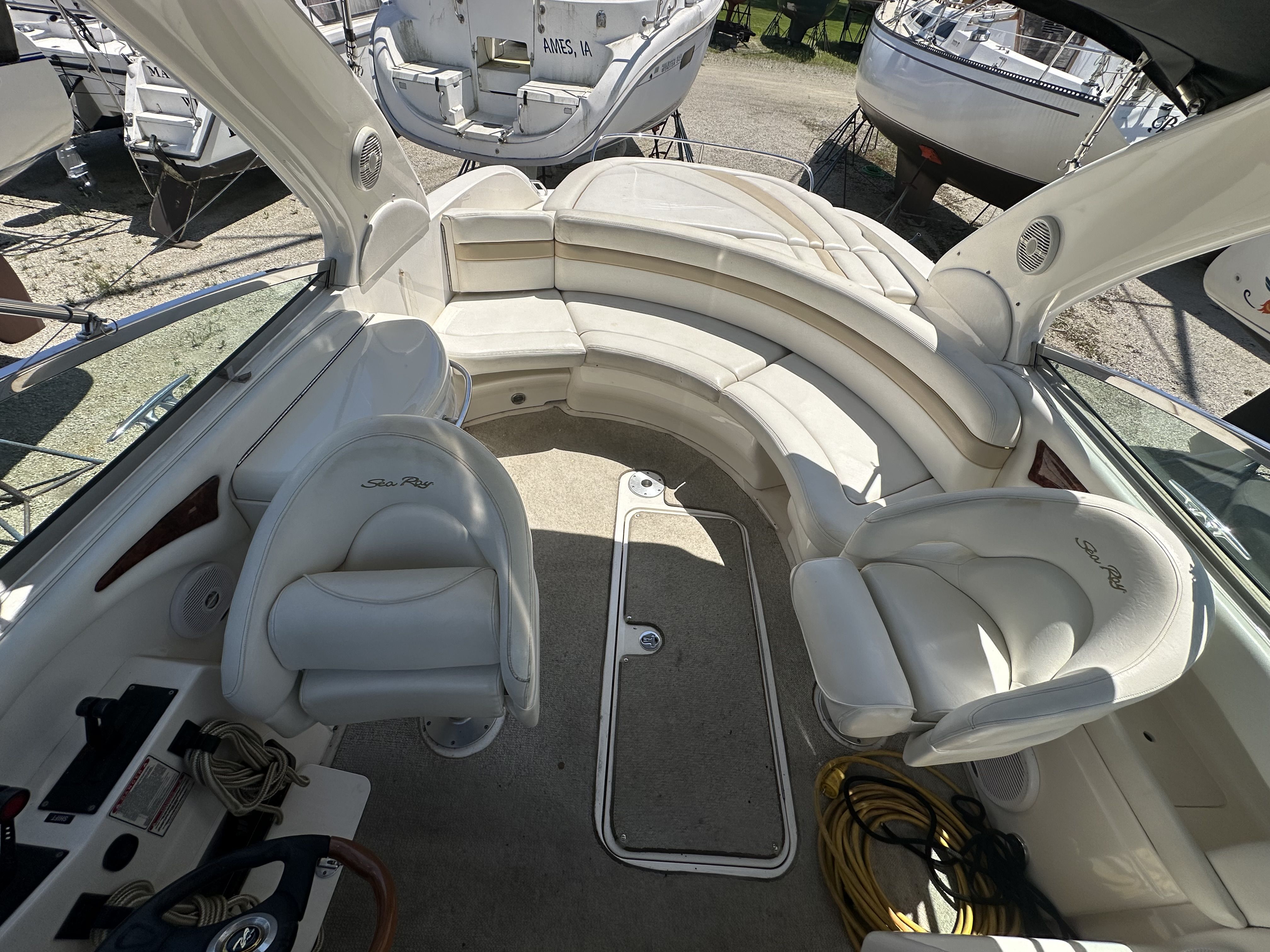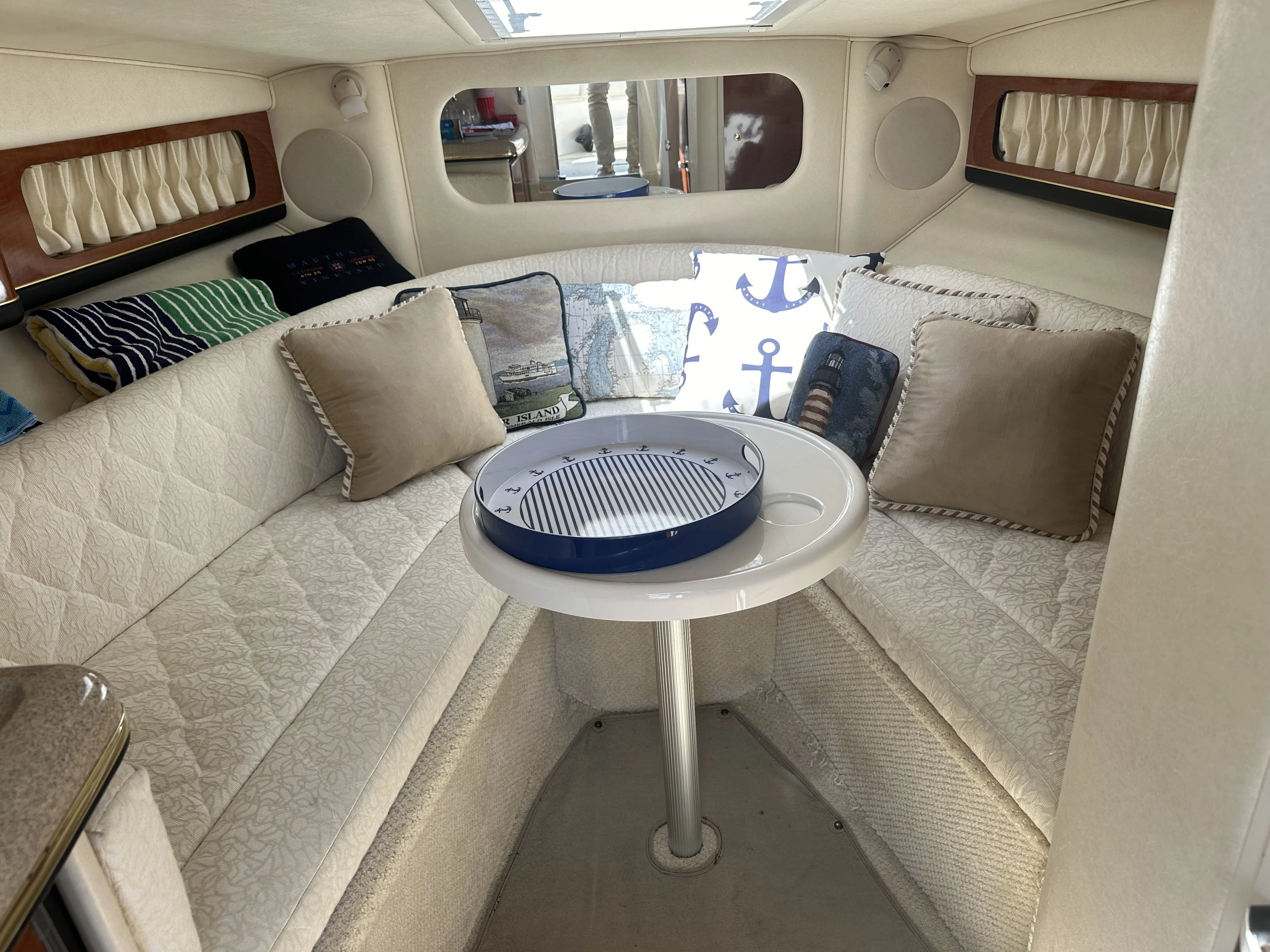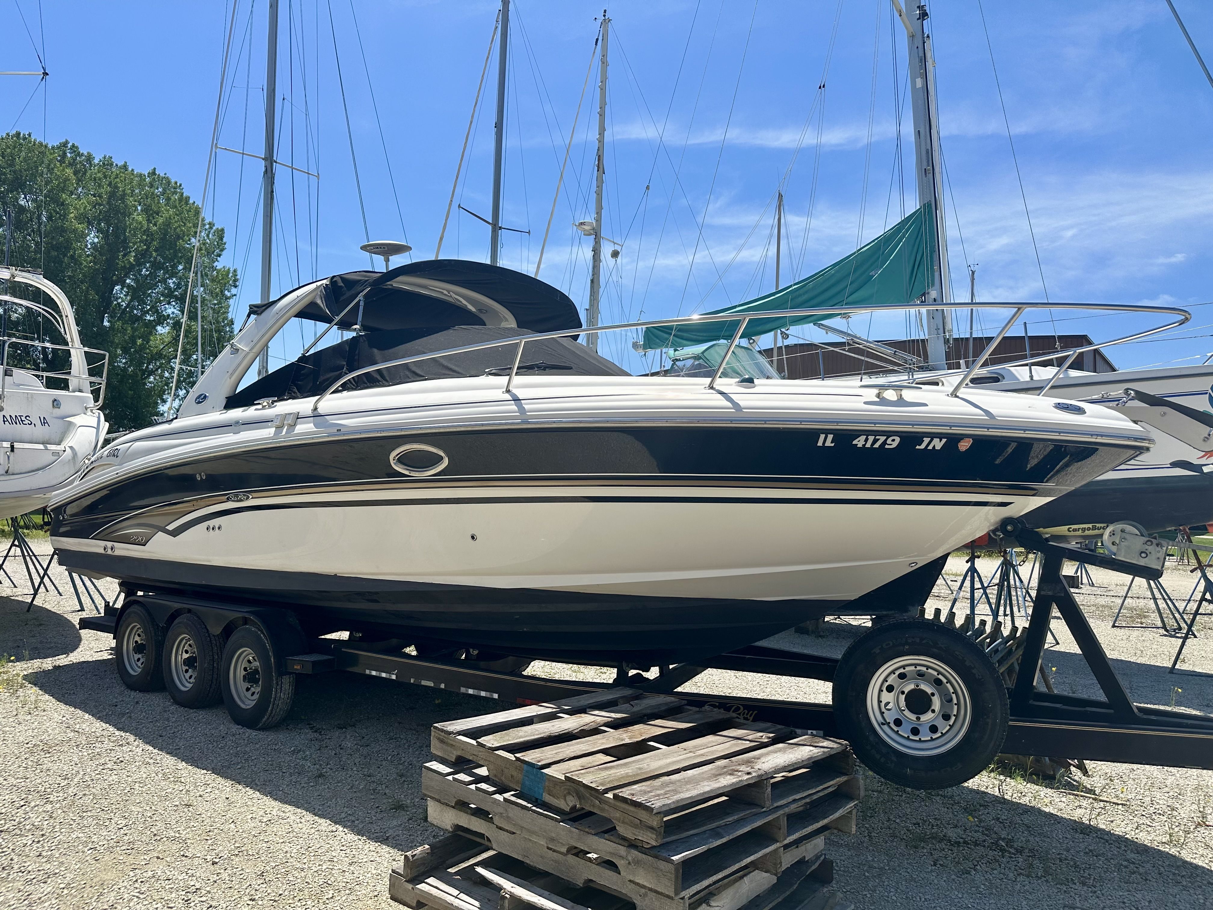 Highlights include separate enclosed vacuflush head, electric windlass, and on board refrigerator. Incredible seating topside with large aft sunpad. Other recent improvements are the Raymarine GPS and bottom paint. Repowered in 2017 port / 2024 stbd. The Mercruiser 5.7EFI BII Engines have had limited use. The boat has approx 870 hours on it total. Trailer included. Call to schedule showing today! Trades considered.