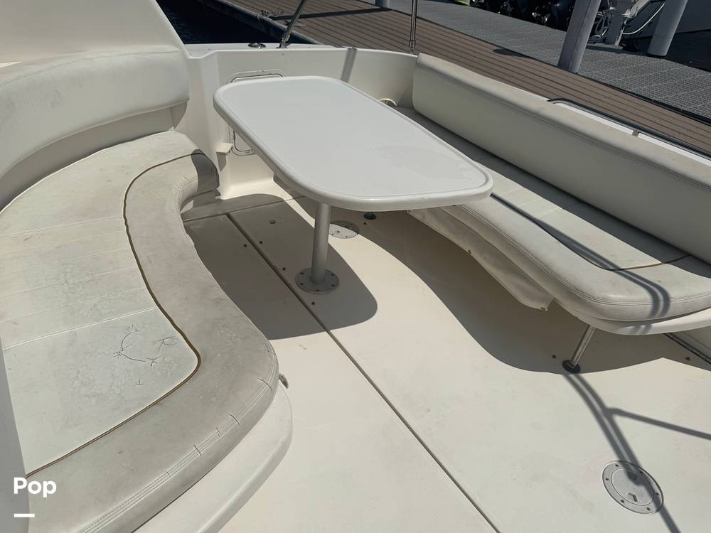Appointed with a spacious cockpit area with comfortable seating for multiple guests, including a wet bar with sink and plenty of storage. Perfect for entertaining and socializing on the water.