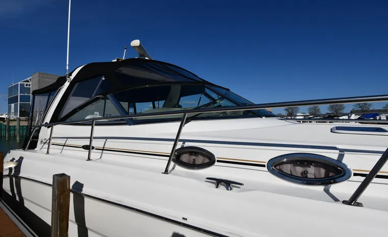 Freshwater / Great Lakes boat since new this vessel features Twin MerCruiser 8.1-litre 380-hp Gas Engines with 792 original hours. Notable features include but are not limited to the following: Air-Conditioning & Heat (2-Zones), Head (Vacuflush) w/Vanity/Sink/Stall Shower, Maple Interior Cabinetry, Central Vacuum, Westerbeke Generator (240-hrs.), Raytheon Electronics Package (VHF Marine Radio, Depth/Speed, Radar w/GPS/Chartplotter, Autopilot), NEW Custom Canvas Package (Forward & Aft Bimini's w/Forward & Side Isin-Glass & Camper-Top Aft), Cockpit Wet Bar w/Sink/Ice-Maker, Upgraded Fusion Sound System w/iPod/MP3-Connection & Full JL-Audio Speaker's w/Sub-Woofer's, Snap-in Snap-out Cockpit Carpeting, Windlass Anchor w/Forward Bow Controls, and MUCH more!