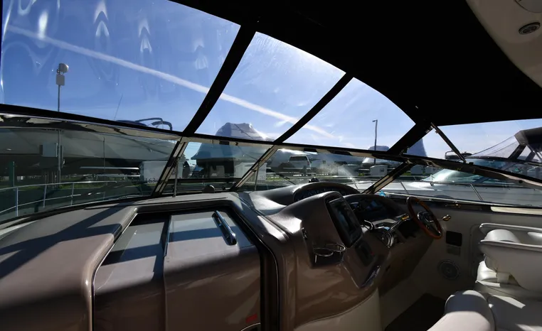 Freshwater / Great Lakes boat since new this vessel features Twin MerCruiser 8.1-litre 380-hp Gas Engines with 792 original hours. Notable features include but are not limited to the following: Air-Conditioning & Heat (2-Zones), Head (Vacuflush) w/Vanity/Sink/Stall Shower, Maple Interior Cabinetry, Central Vacuum, Westerbeke Generator (240-hrs.), Raytheon Electronics Package (VHF Marine Radio, Depth/Speed, Radar w/GPS/Chartplotter, Autopilot), NEW Custom Canvas Package (Forward & Aft Bimini's w/Forward & Side Isin-Glass & Camper-Top Aft), Cockpit Wet Bar w/Sink/Ice-Maker, Upgraded Fusion Sound System w/iPod/MP3-Connection & Full JL-Audio Speaker's w/Sub-Woofer's, Snap-in Snap-out Cockpit Carpeting, Windlass Anchor w/Forward Bow Controls, and MUCH more!
