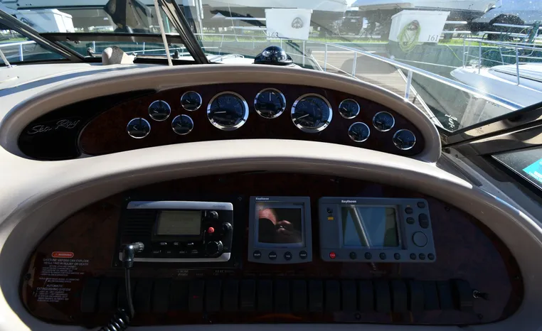 Freshwater / Great Lakes boat since new this vessel features Twin MerCruiser 8.1-litre 380-hp Gas Engines with 792 original hours. Notable features include but are not limited to the following: Air-Conditioning & Heat (2-Zones), Head (Vacuflush) w/Vanity/Sink/Stall Shower, Maple Interior Cabinetry, Central Vacuum, Westerbeke Generator (240-hrs.), Raytheon Electronics Package (VHF Marine Radio, Depth/Speed, Radar w/GPS/Chartplotter, Autopilot), NEW Custom Canvas Package (Forward & Aft Bimini's w/Forward & Side Isin-Glass & Camper-Top Aft), Cockpit Wet Bar w/Sink/Ice-Maker, Upgraded Fusion Sound System w/iPod/MP3-Connection & Full JL-Audio Speaker's w/Sub-Woofer's, Snap-in Snap-out Cockpit Carpeting, Windlass Anchor w/Forward Bow Controls, and MUCH more!