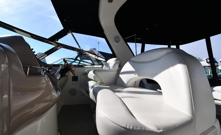 Freshwater / Great Lakes boat since new this vessel features Twin MerCruiser 8.1-litre 380-hp Gas Engines with 792 original hours. Notable features include but are not limited to the following: Air-Conditioning & Heat (2-Zones), Head (Vacuflush) w/Vanity/Sink/Stall Shower, Maple Interior Cabinetry, Central Vacuum, Westerbeke Generator (240-hrs.), Raytheon Electronics Package (VHF Marine Radio, Depth/Speed, Radar w/GPS/Chartplotter, Autopilot), NEW Custom Canvas Package (Forward & Aft Bimini's w/Forward & Side Isin-Glass & Camper-Top Aft), Cockpit Wet Bar w/Sink/Ice-Maker, Upgraded Fusion Sound System w/iPod/MP3-Connection & Full JL-Audio Speaker's w/Sub-Woofer's, Snap-in Snap-out Cockpit Carpeting, Windlass Anchor w/Forward Bow Controls, and MUCH more!