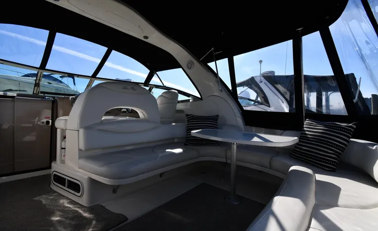 Freshwater / Great Lakes boat since new this vessel features Twin MerCruiser 8.1-litre 380-hp Gas Engines with 792 original hours. Notable features include but are not limited to the following: Air-Conditioning & Heat (2-Zones), Head (Vacuflush) w/Vanity/Sink/Stall Shower, Maple Interior Cabinetry, Central Vacuum, Westerbeke Generator (240-hrs.), Raytheon Electronics Package (VHF Marine Radio, Depth/Speed, Radar w/GPS/Chartplotter, Autopilot), NEW Custom Canvas Package (Forward & Aft Bimini's w/Forward & Side Isin-Glass & Camper-Top Aft), Cockpit Wet Bar w/Sink/Ice-Maker, Upgraded Fusion Sound System w/iPod/MP3-Connection & Full JL-Audio Speaker's w/Sub-Woofer's, Snap-in Snap-out Cockpit Carpeting, Windlass Anchor w/Forward Bow Controls, and MUCH more!