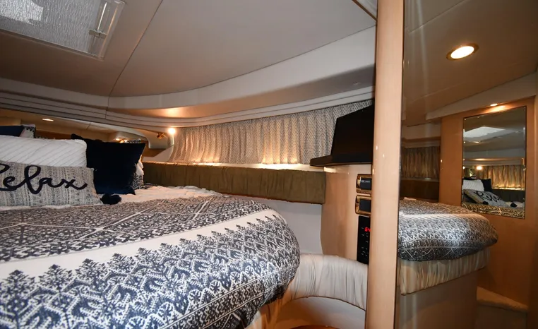 Freshwater / Great Lakes boat since new this vessel features Twin MerCruiser 8.1-litre 380-hp Gas Engines with 792 original hours. Notable features include but are not limited to the following: Air-Conditioning & Heat (2-Zones), Head (Vacuflush) w/Vanity/Sink/Stall Shower, Maple Interior Cabinetry, Central Vacuum, Westerbeke Generator (240-hrs.), Raytheon Electronics Package (VHF Marine Radio, Depth/Speed, Radar w/GPS/Chartplotter, Autopilot), NEW Custom Canvas Package (Forward & Aft Bimini's w/Forward & Side Isin-Glass & Camper-Top Aft), Cockpit Wet Bar w/Sink/Ice-Maker, Upgraded Fusion Sound System w/iPod/MP3-Connection & Full JL-Audio Speaker's w/Sub-Woofer's, Snap-in Snap-out Cockpit Carpeting, Windlass Anchor w/Forward Bow Controls, and MUCH more!