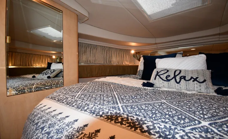 Freshwater / Great Lakes boat since new this vessel features Twin MerCruiser 8.1-litre 380-hp Gas Engines with 792 original hours. Notable features include but are not limited to the following: Air-Conditioning & Heat (2-Zones), Head (Vacuflush) w/Vanity/Sink/Stall Shower, Maple Interior Cabinetry, Central Vacuum, Westerbeke Generator (240-hrs.), Raytheon Electronics Package (VHF Marine Radio, Depth/Speed, Radar w/GPS/Chartplotter, Autopilot), NEW Custom Canvas Package (Forward & Aft Bimini's w/Forward & Side Isin-Glass & Camper-Top Aft), Cockpit Wet Bar w/Sink/Ice-Maker, Upgraded Fusion Sound System w/iPod/MP3-Connection & Full JL-Audio Speaker's w/Sub-Woofer's, Snap-in Snap-out Cockpit Carpeting, Windlass Anchor w/Forward Bow Controls, and MUCH more!