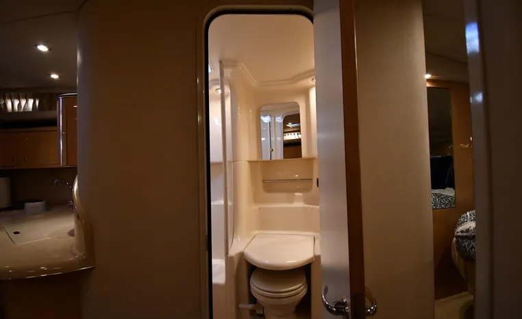 Freshwater / Great Lakes boat since new this vessel features Twin MerCruiser 8.1-litre 380-hp Gas Engines with 792 original hours. Notable features include but are not limited to the following: Air-Conditioning & Heat (2-Zones), Head (Vacuflush) w/Vanity/Sink/Stall Shower, Maple Interior Cabinetry, Central Vacuum, Westerbeke Generator (240-hrs.), Raytheon Electronics Package (VHF Marine Radio, Depth/Speed, Radar w/GPS/Chartplotter, Autopilot), NEW Custom Canvas Package (Forward & Aft Bimini's w/Forward & Side Isin-Glass & Camper-Top Aft), Cockpit Wet Bar w/Sink/Ice-Maker, Upgraded Fusion Sound System w/iPod/MP3-Connection & Full JL-Audio Speaker's w/Sub-Woofer's, Snap-in Snap-out Cockpit Carpeting, Windlass Anchor w/Forward Bow Controls, and MUCH more!