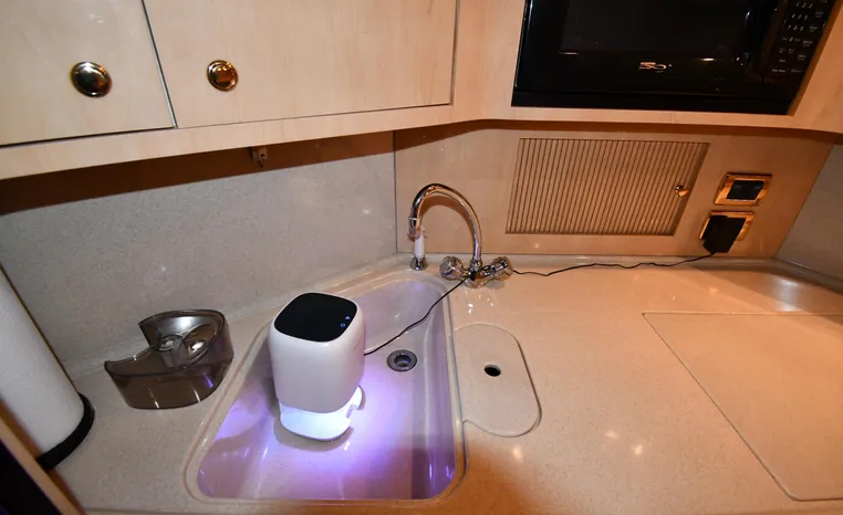 Freshwater / Great Lakes boat since new this vessel features Twin MerCruiser 8.1-litre 380-hp Gas Engines with 792 original hours. Notable features include but are not limited to the following: Air-Conditioning & Heat (2-Zones), Head (Vacuflush) w/Vanity/Sink/Stall Shower, Maple Interior Cabinetry, Central Vacuum, Westerbeke Generator (240-hrs.), Raytheon Electronics Package (VHF Marine Radio, Depth/Speed, Radar w/GPS/Chartplotter, Autopilot), NEW Custom Canvas Package (Forward & Aft Bimini's w/Forward & Side Isin-Glass & Camper-Top Aft), Cockpit Wet Bar w/Sink/Ice-Maker, Upgraded Fusion Sound System w/iPod/MP3-Connection & Full JL-Audio Speaker's w/Sub-Woofer's, Snap-in Snap-out Cockpit Carpeting, Windlass Anchor w/Forward Bow Controls, and MUCH more!