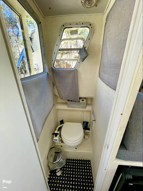 Able to sleep up to four people, she's great for overnighting and getting out out of the sun. There is a very comfortable dinette that converts into a berth on the port side with a traditional V-berth up front. This cabin has heat extending your season.