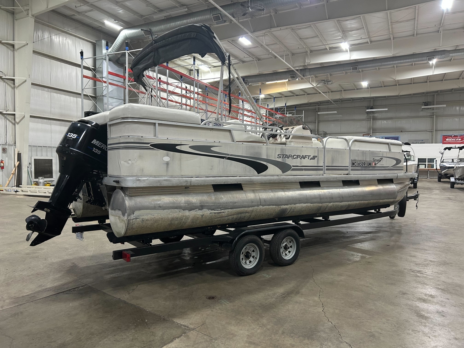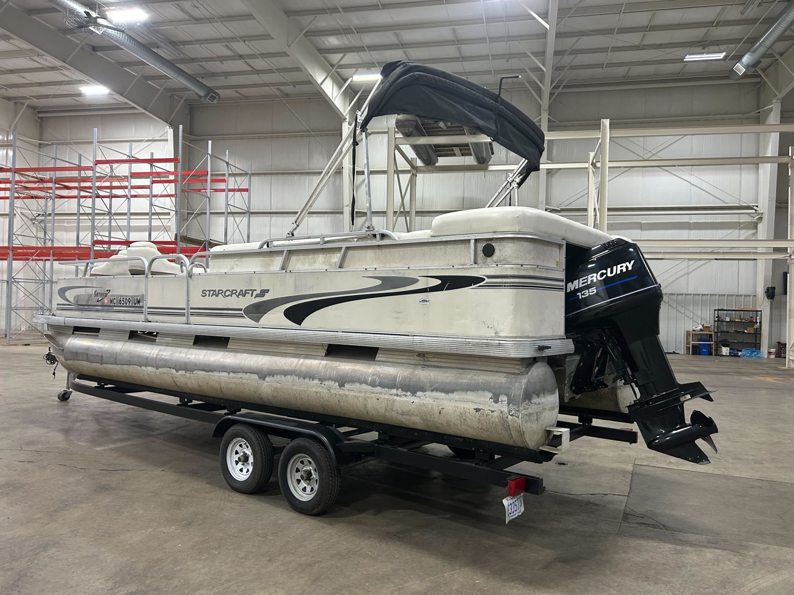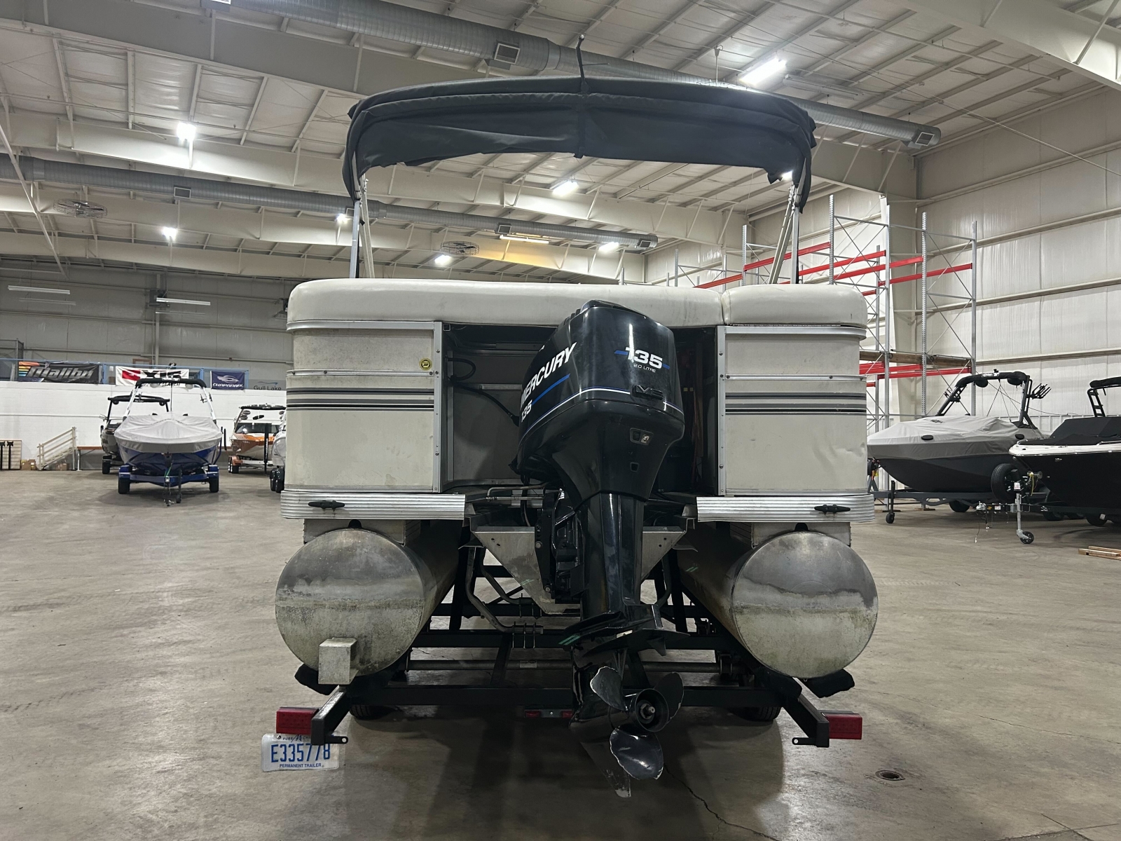 Powered by a Mercury 135hp 2-stroke motor, this pontoon delivers performance for cruising, watersports, or long days of relaxing on the lake.