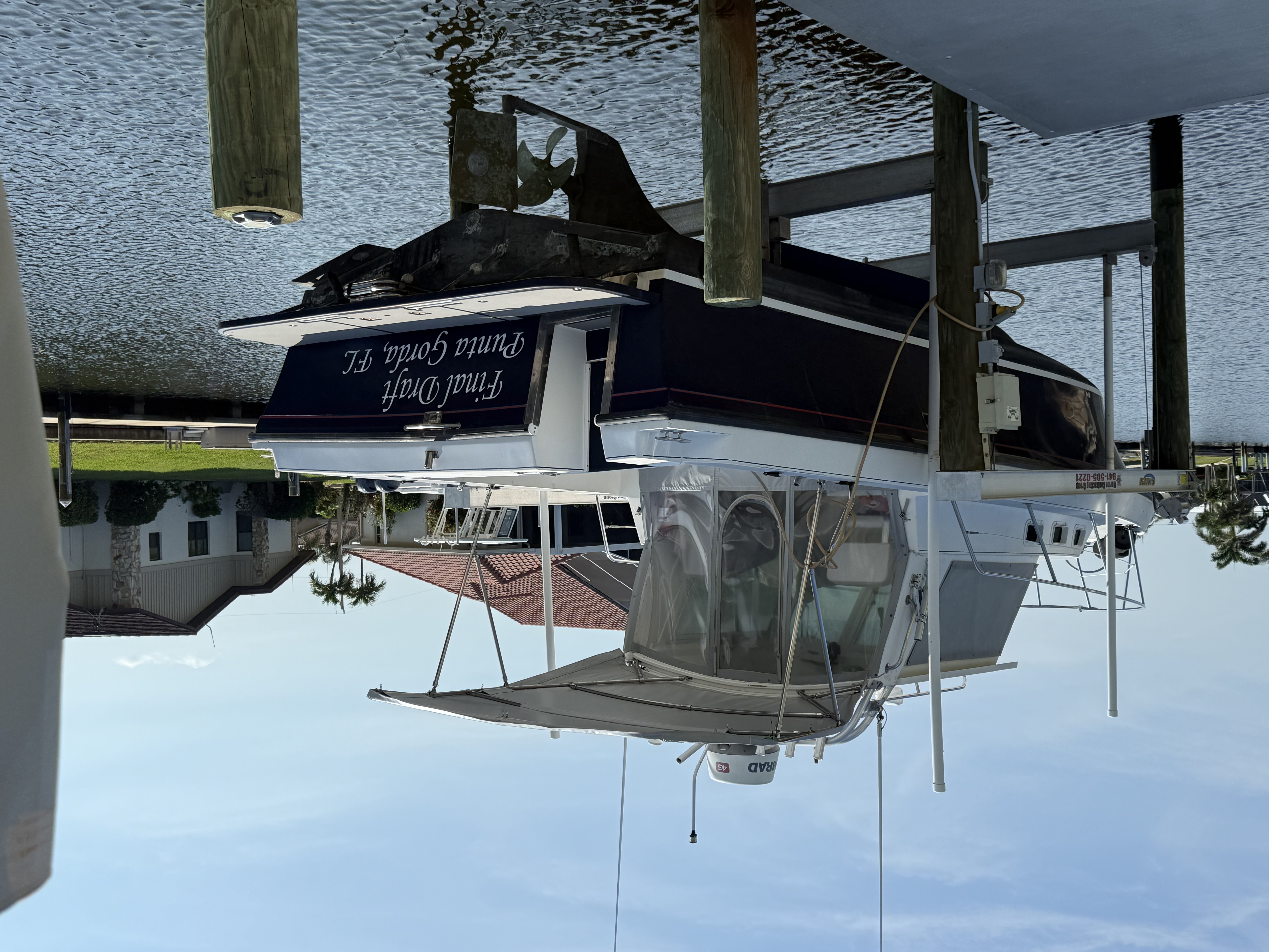 Final Draft has been kept on my boat lift since we brought it home in February of 2023. I have installed (all new) a windless (same specification as original), dripless seal on the shaft, main VHF radio (same spec), Bluetooth stereo, battery charger (same spec), shower sump pump, SeaFlow Marine dry bilge system, windshield wiper arms, engine water hose, transmission oil hoses, and other miscellaneous items. I have also had a complete servicing of the engine by an experienced Yanmar mechanic. I have all documentation and maintenance records dating back to the date of the original purchase.