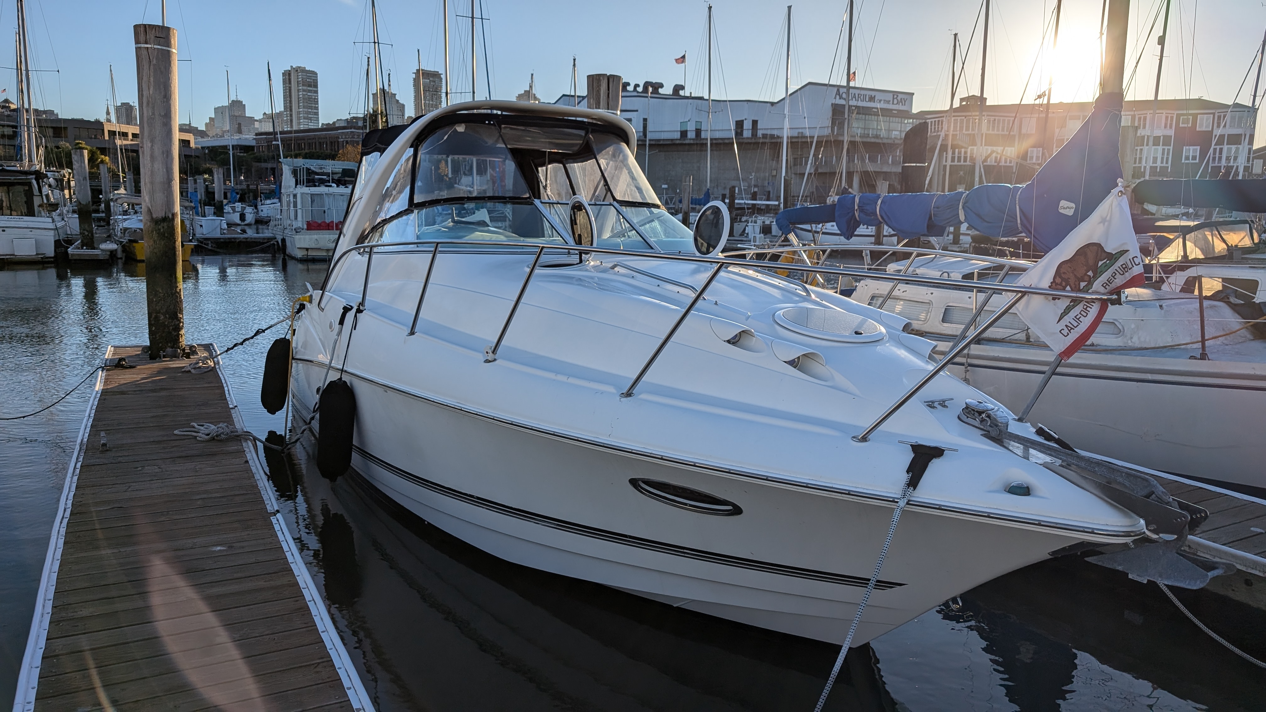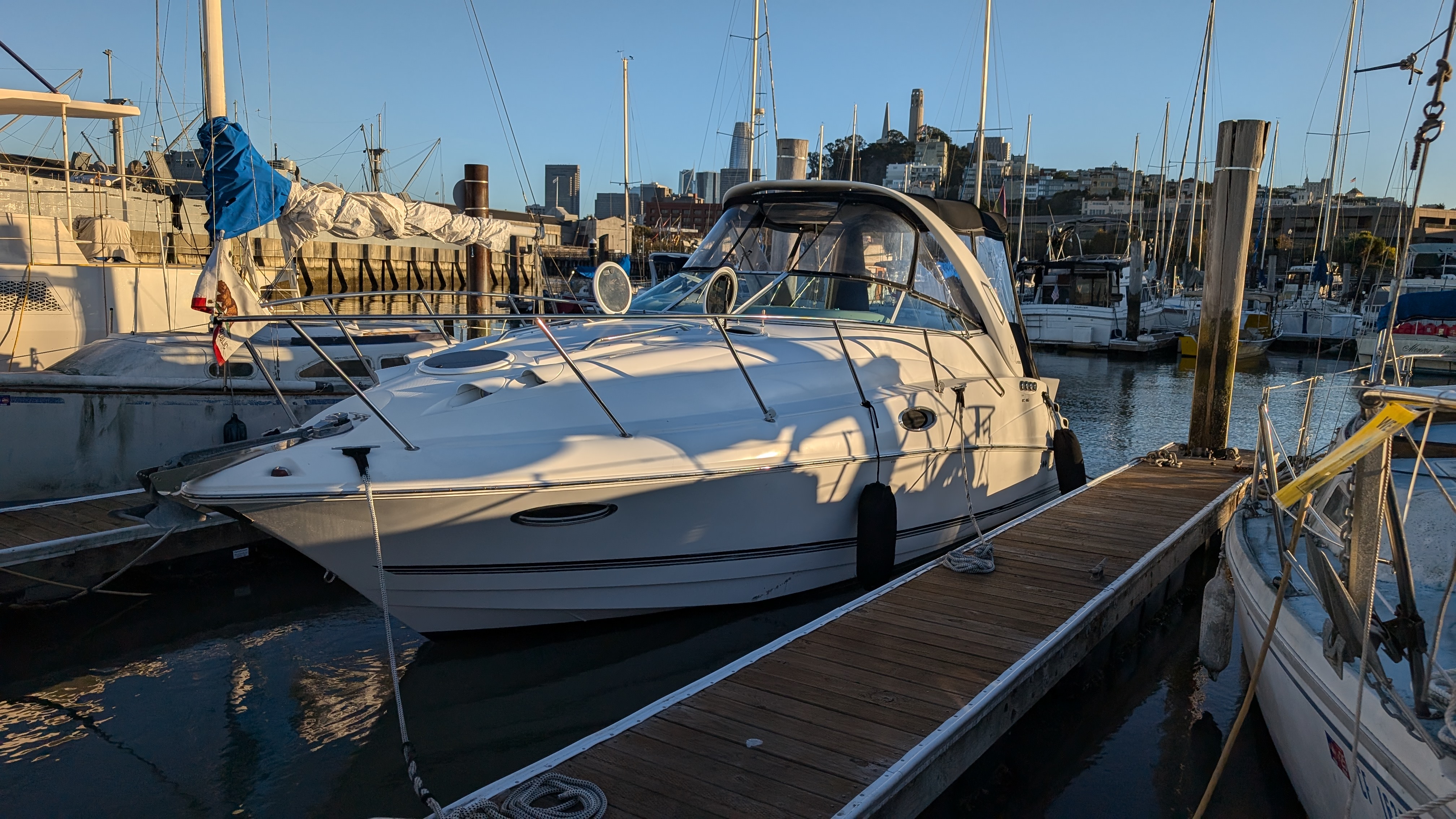 OWNER FINANCING AVAILABLE WITH 25% DOWNPAYMENT, WITH LOW INTEREST RATE. Boat Price: $100,000 Down Payment: $25,000 (25% of the purchase price) Loan Amount: $75,000 (remaining balance after the down payment) Loan Term: 5 years (60 months) Annual Interest Rate: 6.5% Estimated Monthly Payment: $1,461.97 (includes both principal and interest) Total Number of Payments: 60 Payment Frequency: Monthly 2002 Campion Allante LX 925i. Canadian built boat with beautiful modern design. Twin Volvo Penta 5.7GSi Engines with 320hp each. Kohler power generator with 103 total hours. Cruising speed of 30 mph at 3500 rpm with 18 gph fuel efficiency. Maximum speed of 50 mph. Garmin GPSMAP Navigation System, with fish finder, and all bells and whistles. Central heat and air conditioning system. Anchor windlass - automatic CO2 Detectors. Gasoline Fume Detection System. Fire extinguishers. Fuel tank with 130 Gallon capacity. Fresh water tank with 30 Gallon capacity. Two holding tanks with 25 Gallon capacity each. Lots of cabinets and storage. Kitchenette with microwave and refrigerator. Coffee maker. Stove. Hot water. Bathroom with shower and electric flush toilet. Transom shower. Wet bar with cockpit fridge on deck. Sony Stereo system with eight speakers and bluetooth. Sun pad. Twin cabins that can sleep 4 (we had 5 one time, because the table on the deck flips over and turns the seats into a bed). Seating for 8-10. Most recent service in 2024 with a total invoice of $18K included bottom paint, paint/service of sterndrives, new propellers, new steering pumps and cables, shifter/throttle service with new cables, and new transom speed sensor. New trim tabs. Boat was detailed on 10/6/2024 Title in hand. Service records available since 2011. US Coast Guard registration - $300 to US Coast Guard will do the transfer. Boat is at Pier 39 Marina - lovely spot, with views of Salesforce building, Coit Tower and Transamerica building, from your slip. Magical at night. Monthly slip fees are about $450-$475, depending on how much electricity you use. The slip ownership is easily transferable and it is currently on month-to-month rental agreement. Serious buyers only.