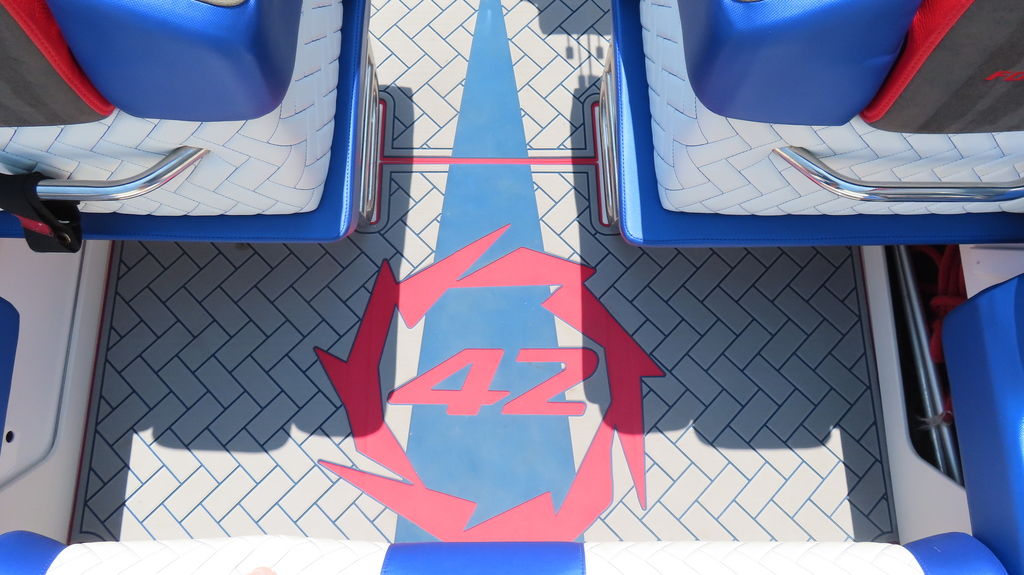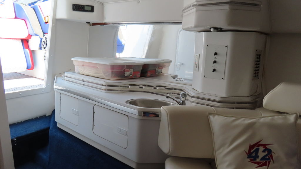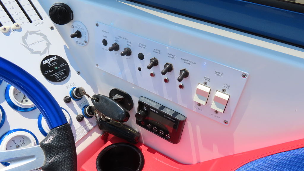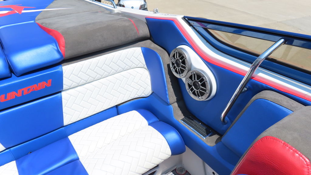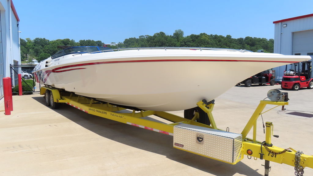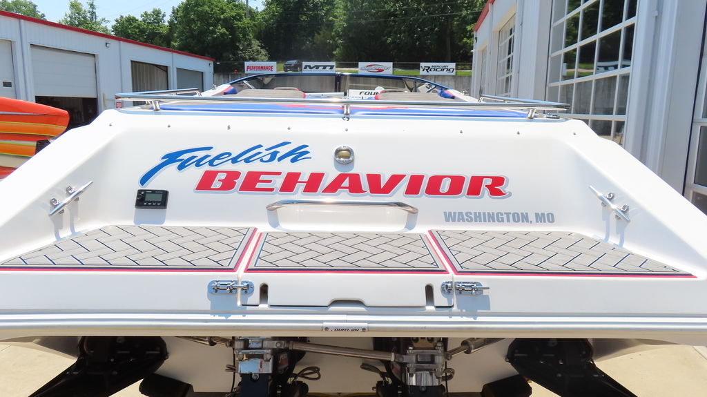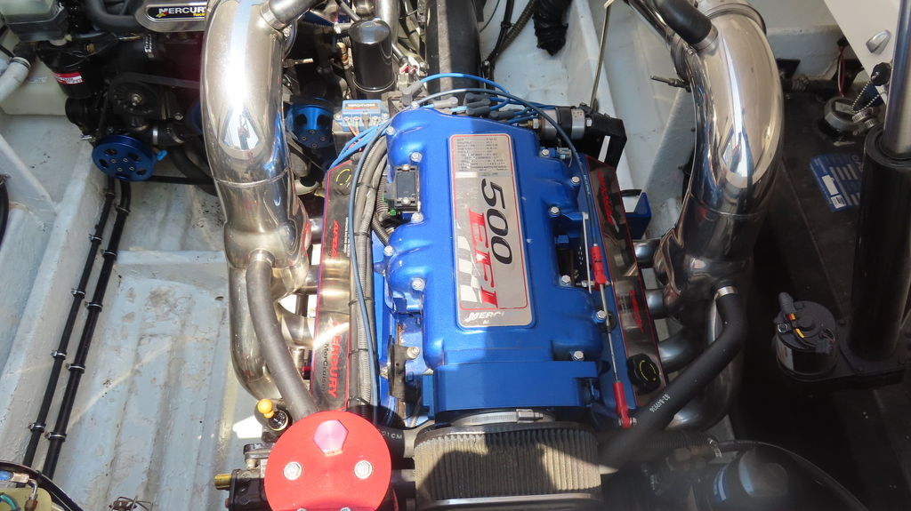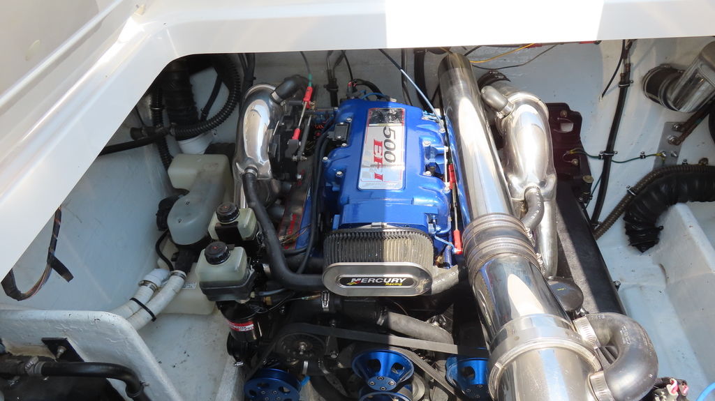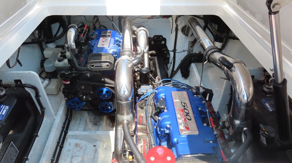 Powered by Twin Mercury 500EFIs with 346 hours, udated Seadek, Updated interior and audio buy Waves and Wheels, swim platform fusion head unit, 280 K plains, pump out head, in cabin sink and cooler, fusion head units, tab and trim indicators, Halon fire suppression, NO TRAILER.