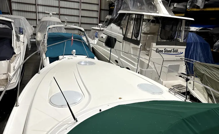 Freshwater / Great Lakes boat since new this vessel features Twin Volvo 8.1-litre Gi 375-hp Gas Inboard Engine's with 643-Hours showing on meters in bilge. Notable features include but are not limited to the following: Air-Conditioning & Heat (1-Unit), Head (Vacuflush) w/Vanity/Sink/Stall-Shower, Central Vacuum System, Kohler 7.3kw Generator (240-Hours), Windlass Anchor w/Forward Pedal-Controls, Complete Electronics Package (VHF Marine Radio, Depth/Speed, New Garmin Radar and New Garmin/GPS/Chartplotter, Raymarine Autopilot, Upgraded Fusion Stereo w/Premium Sound System w/iPod/MP3-Connection, Cockpit Wet Bar w/Sink/Ice-Maker/Refrigerator, Full Camper-Top Canvas Package w/Screens, Mooring Cover and MUCH more!