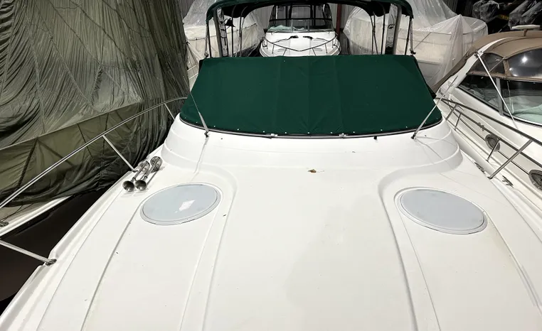 Freshwater / Great Lakes boat since new this vessel features Twin Volvo 8.1-litre Gi 375-hp Gas Inboard Engine's with 643-Hours showing on meters in bilge. Notable features include but are not limited to the following: Air-Conditioning & Heat (1-Unit), Head (Vacuflush) w/Vanity/Sink/Stall-Shower, Central Vacuum System, Kohler 7.3kw Generator (240-Hours), Windlass Anchor w/Forward Pedal-Controls, Complete Electronics Package (VHF Marine Radio, Depth/Speed, New Garmin Radar and New Garmin/GPS/Chartplotter, Raymarine Autopilot, Upgraded Fusion Stereo w/Premium Sound System w/iPod/MP3-Connection, Cockpit Wet Bar w/Sink/Ice-Maker/Refrigerator, Full Camper-Top Canvas Package w/Screens, Mooring Cover and MUCH more!