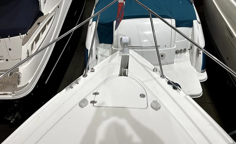Freshwater / Great Lakes boat since new this vessel features Twin Volvo 8.1-litre Gi 375-hp Gas Inboard Engine's with 643-Hours showing on meters in bilge. Notable features include but are not limited to the following: Air-Conditioning & Heat (1-Unit), Head (Vacuflush) w/Vanity/Sink/Stall-Shower, Central Vacuum System, Kohler 7.3kw Generator (240-Hours), Windlass Anchor w/Forward Pedal-Controls, Complete Electronics Package (VHF Marine Radio, Depth/Speed, New Garmin Radar and New Garmin/GPS/Chartplotter, Raymarine Autopilot, Upgraded Fusion Stereo w/Premium Sound System w/iPod/MP3-Connection, Cockpit Wet Bar w/Sink/Ice-Maker/Refrigerator, Full Camper-Top Canvas Package w/Screens, Mooring Cover and MUCH more!