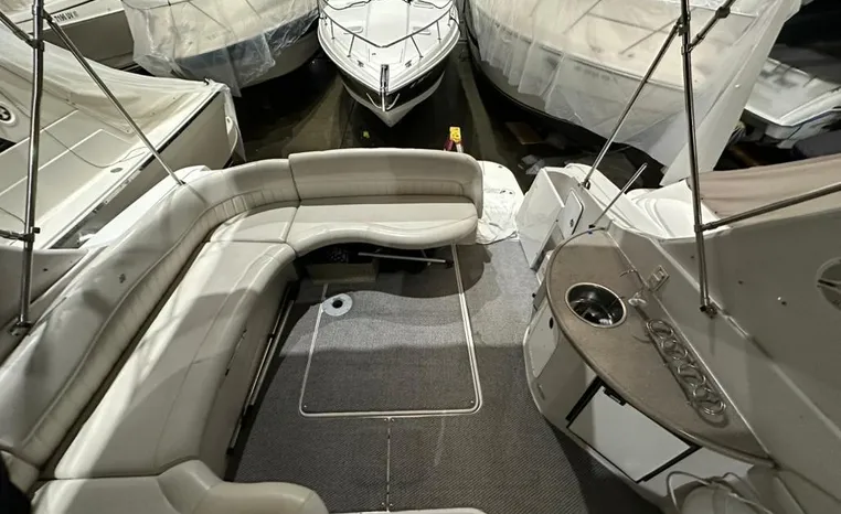Freshwater / Great Lakes boat since new this vessel features Twin Volvo 8.1-litre Gi 375-hp Gas Inboard Engine's with 643-Hours showing on meters in bilge. Notable features include but are not limited to the following: Air-Conditioning & Heat (1-Unit), Head (Vacuflush) w/Vanity/Sink/Stall-Shower, Central Vacuum System, Kohler 7.3kw Generator (240-Hours), Windlass Anchor w/Forward Pedal-Controls, Complete Electronics Package (VHF Marine Radio, Depth/Speed, New Garmin Radar and New Garmin/GPS/Chartplotter, Raymarine Autopilot, Upgraded Fusion Stereo w/Premium Sound System w/iPod/MP3-Connection, Cockpit Wet Bar w/Sink/Ice-Maker/Refrigerator, Full Camper-Top Canvas Package w/Screens, Mooring Cover and MUCH more!