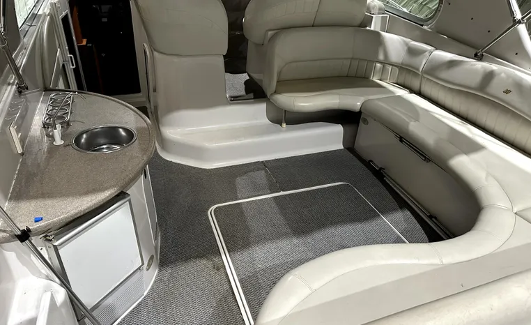 Freshwater / Great Lakes boat since new this vessel features Twin Volvo 8.1-litre Gi 375-hp Gas Inboard Engine's with 643-Hours showing on meters in bilge. Notable features include but are not limited to the following: Air-Conditioning & Heat (1-Unit), Head (Vacuflush) w/Vanity/Sink/Stall-Shower, Central Vacuum System, Kohler 7.3kw Generator (240-Hours), Windlass Anchor w/Forward Pedal-Controls, Complete Electronics Package (VHF Marine Radio, Depth/Speed, New Garmin Radar and New Garmin/GPS/Chartplotter, Raymarine Autopilot, Upgraded Fusion Stereo w/Premium Sound System w/iPod/MP3-Connection, Cockpit Wet Bar w/Sink/Ice-Maker/Refrigerator, Full Camper-Top Canvas Package w/Screens, Mooring Cover and MUCH more!