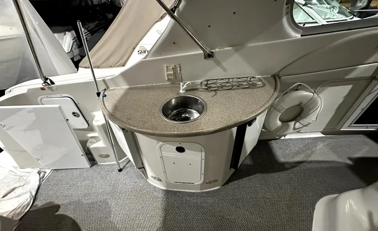 Freshwater / Great Lakes boat since new this vessel features Twin Volvo 8.1-litre Gi 375-hp Gas Inboard Engine's with 643-Hours showing on meters in bilge. Notable features include but are not limited to the following: Air-Conditioning & Heat (1-Unit), Head (Vacuflush) w/Vanity/Sink/Stall-Shower, Central Vacuum System, Kohler 7.3kw Generator (240-Hours), Windlass Anchor w/Forward Pedal-Controls, Complete Electronics Package (VHF Marine Radio, Depth/Speed, New Garmin Radar and New Garmin/GPS/Chartplotter, Raymarine Autopilot, Upgraded Fusion Stereo w/Premium Sound System w/iPod/MP3-Connection, Cockpit Wet Bar w/Sink/Ice-Maker/Refrigerator, Full Camper-Top Canvas Package w/Screens, Mooring Cover and MUCH more!