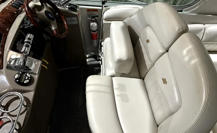 Freshwater / Great Lakes boat since new this vessel features Twin Volvo 8.1-litre Gi 375-hp Gas Inboard Engine's with 643-Hours showing on meters in bilge. Notable features include but are not limited to the following: Air-Conditioning & Heat (1-Unit), Head (Vacuflush) w/Vanity/Sink/Stall-Shower, Central Vacuum System, Kohler 7.3kw Generator (240-Hours), Windlass Anchor w/Forward Pedal-Controls, Complete Electronics Package (VHF Marine Radio, Depth/Speed, New Garmin Radar and New Garmin/GPS/Chartplotter, Raymarine Autopilot, Upgraded Fusion Stereo w/Premium Sound System w/iPod/MP3-Connection, Cockpit Wet Bar w/Sink/Ice-Maker/Refrigerator, Full Camper-Top Canvas Package w/Screens, Mooring Cover and MUCH more!