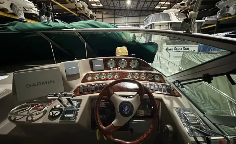 Freshwater / Great Lakes boat since new this vessel features Twin Volvo 8.1-litre Gi 375-hp Gas Inboard Engine's with 643-Hours showing on meters in bilge. Notable features include but are not limited to the following: Air-Conditioning & Heat (1-Unit), Head (Vacuflush) w/Vanity/Sink/Stall-Shower, Central Vacuum System, Kohler 7.3kw Generator (240-Hours), Windlass Anchor w/Forward Pedal-Controls, Complete Electronics Package (VHF Marine Radio, Depth/Speed, New Garmin Radar and New Garmin/GPS/Chartplotter, Raymarine Autopilot, Upgraded Fusion Stereo w/Premium Sound System w/iPod/MP3-Connection, Cockpit Wet Bar w/Sink/Ice-Maker/Refrigerator, Full Camper-Top Canvas Package w/Screens, Mooring Cover and MUCH more!