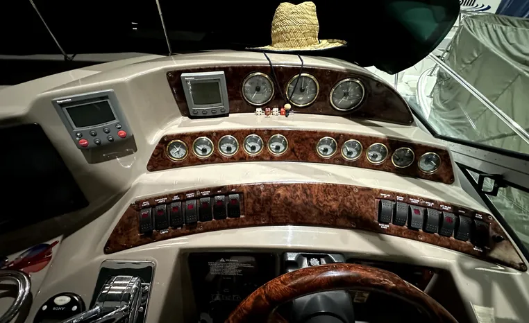 Freshwater / Great Lakes boat since new this vessel features Twin Volvo 8.1-litre Gi 375-hp Gas Inboard Engine's with 643-Hours showing on meters in bilge. Notable features include but are not limited to the following: Air-Conditioning & Heat (1-Unit), Head (Vacuflush) w/Vanity/Sink/Stall-Shower, Central Vacuum System, Kohler 7.3kw Generator (240-Hours), Windlass Anchor w/Forward Pedal-Controls, Complete Electronics Package (VHF Marine Radio, Depth/Speed, New Garmin Radar and New Garmin/GPS/Chartplotter, Raymarine Autopilot, Upgraded Fusion Stereo w/Premium Sound System w/iPod/MP3-Connection, Cockpit Wet Bar w/Sink/Ice-Maker/Refrigerator, Full Camper-Top Canvas Package w/Screens, Mooring Cover and MUCH more!