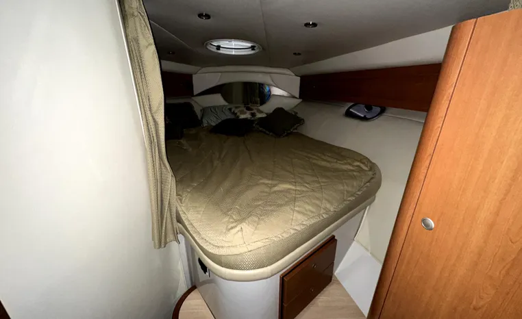 Freshwater / Great Lakes boat since new this vessel features Twin Volvo 8.1-litre Gi 375-hp Gas Inboard Engine's with 643-Hours showing on meters in bilge. Notable features include but are not limited to the following: Air-Conditioning & Heat (1-Unit), Head (Vacuflush) w/Vanity/Sink/Stall-Shower, Central Vacuum System, Kohler 7.3kw Generator (240-Hours), Windlass Anchor w/Forward Pedal-Controls, Complete Electronics Package (VHF Marine Radio, Depth/Speed, New Garmin Radar and New Garmin/GPS/Chartplotter, Raymarine Autopilot, Upgraded Fusion Stereo w/Premium Sound System w/iPod/MP3-Connection, Cockpit Wet Bar w/Sink/Ice-Maker/Refrigerator, Full Camper-Top Canvas Package w/Screens, Mooring Cover and MUCH more!