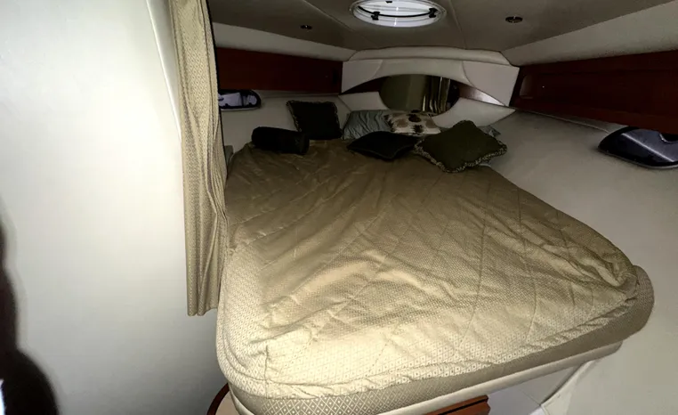 Freshwater / Great Lakes boat since new this vessel features Twin Volvo 8.1-litre Gi 375-hp Gas Inboard Engine's with 643-Hours showing on meters in bilge. Notable features include but are not limited to the following: Air-Conditioning & Heat (1-Unit), Head (Vacuflush) w/Vanity/Sink/Stall-Shower, Central Vacuum System, Kohler 7.3kw Generator (240-Hours), Windlass Anchor w/Forward Pedal-Controls, Complete Electronics Package (VHF Marine Radio, Depth/Speed, New Garmin Radar and New Garmin/GPS/Chartplotter, Raymarine Autopilot, Upgraded Fusion Stereo w/Premium Sound System w/iPod/MP3-Connection, Cockpit Wet Bar w/Sink/Ice-Maker/Refrigerator, Full Camper-Top Canvas Package w/Screens, Mooring Cover and MUCH more!