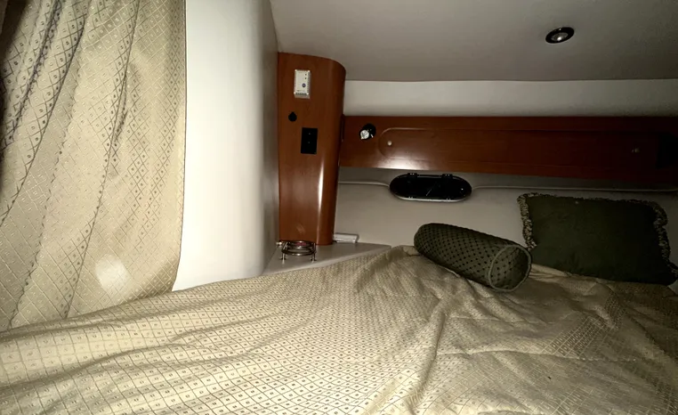 Freshwater / Great Lakes boat since new this vessel features Twin Volvo 8.1-litre Gi 375-hp Gas Inboard Engine's with 643-Hours showing on meters in bilge. Notable features include but are not limited to the following: Air-Conditioning & Heat (1-Unit), Head (Vacuflush) w/Vanity/Sink/Stall-Shower, Central Vacuum System, Kohler 7.3kw Generator (240-Hours), Windlass Anchor w/Forward Pedal-Controls, Complete Electronics Package (VHF Marine Radio, Depth/Speed, New Garmin Radar and New Garmin/GPS/Chartplotter, Raymarine Autopilot, Upgraded Fusion Stereo w/Premium Sound System w/iPod/MP3-Connection, Cockpit Wet Bar w/Sink/Ice-Maker/Refrigerator, Full Camper-Top Canvas Package w/Screens, Mooring Cover and MUCH more!