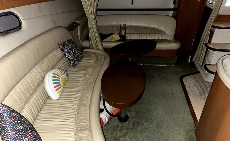 Freshwater / Great Lakes boat since new this vessel features Twin Volvo 8.1-litre Gi 375-hp Gas Inboard Engine's with 643-Hours showing on meters in bilge. Notable features include but are not limited to the following: Air-Conditioning & Heat (1-Unit), Head (Vacuflush) w/Vanity/Sink/Stall-Shower, Central Vacuum System, Kohler 7.3kw Generator (240-Hours), Windlass Anchor w/Forward Pedal-Controls, Complete Electronics Package (VHF Marine Radio, Depth/Speed, New Garmin Radar and New Garmin/GPS/Chartplotter, Raymarine Autopilot, Upgraded Fusion Stereo w/Premium Sound System w/iPod/MP3-Connection, Cockpit Wet Bar w/Sink/Ice-Maker/Refrigerator, Full Camper-Top Canvas Package w/Screens, Mooring Cover and MUCH more!
