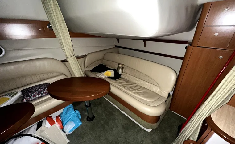 Freshwater / Great Lakes boat since new this vessel features Twin Volvo 8.1-litre Gi 375-hp Gas Inboard Engine's with 643-Hours showing on meters in bilge. Notable features include but are not limited to the following: Air-Conditioning & Heat (1-Unit), Head (Vacuflush) w/Vanity/Sink/Stall-Shower, Central Vacuum System, Kohler 7.3kw Generator (240-Hours), Windlass Anchor w/Forward Pedal-Controls, Complete Electronics Package (VHF Marine Radio, Depth/Speed, New Garmin Radar and New Garmin/GPS/Chartplotter, Raymarine Autopilot, Upgraded Fusion Stereo w/Premium Sound System w/iPod/MP3-Connection, Cockpit Wet Bar w/Sink/Ice-Maker/Refrigerator, Full Camper-Top Canvas Package w/Screens, Mooring Cover and MUCH more!