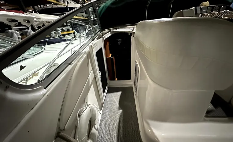 Freshwater / Great Lakes boat since new this vessel features Twin Volvo 8.1-litre Gi 375-hp Gas Inboard Engine's with 643-Hours showing on meters in bilge. Notable features include but are not limited to the following: Air-Conditioning & Heat (1-Unit), Head (Vacuflush) w/Vanity/Sink/Stall-Shower, Central Vacuum System, Kohler 7.3kw Generator (240-Hours), Windlass Anchor w/Forward Pedal-Controls, Complete Electronics Package (VHF Marine Radio, Depth/Speed, New Garmin Radar and New Garmin/GPS/Chartplotter, Raymarine Autopilot, Upgraded Fusion Stereo w/Premium Sound System w/iPod/MP3-Connection, Cockpit Wet Bar w/Sink/Ice-Maker/Refrigerator, Full Camper-Top Canvas Package w/Screens, Mooring Cover and MUCH more!
