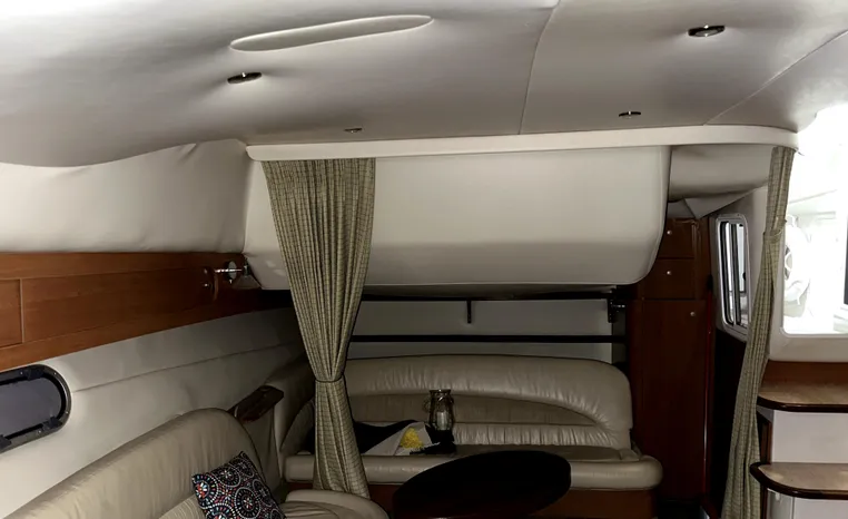 Freshwater / Great Lakes boat since new this vessel features Twin Volvo 8.1-litre Gi 375-hp Gas Inboard Engine's with 643-Hours showing on meters in bilge. Notable features include but are not limited to the following: Air-Conditioning & Heat (1-Unit), Head (Vacuflush) w/Vanity/Sink/Stall-Shower, Central Vacuum System, Kohler 7.3kw Generator (240-Hours), Windlass Anchor w/Forward Pedal-Controls, Complete Electronics Package (VHF Marine Radio, Depth/Speed, New Garmin Radar and New Garmin/GPS/Chartplotter, Raymarine Autopilot, Upgraded Fusion Stereo w/Premium Sound System w/iPod/MP3-Connection, Cockpit Wet Bar w/Sink/Ice-Maker/Refrigerator, Full Camper-Top Canvas Package w/Screens, Mooring Cover and MUCH more!