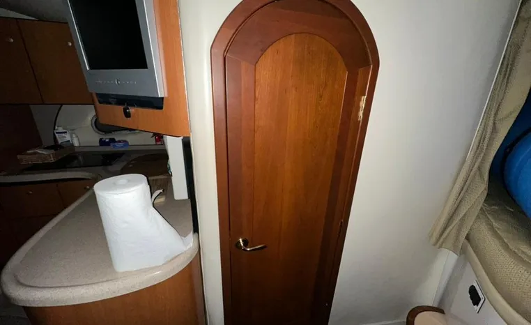 Freshwater / Great Lakes boat since new this vessel features Twin Volvo 8.1-litre Gi 375-hp Gas Inboard Engine's with 643-Hours showing on meters in bilge. Notable features include but are not limited to the following: Air-Conditioning & Heat (1-Unit), Head (Vacuflush) w/Vanity/Sink/Stall-Shower, Central Vacuum System, Kohler 7.3kw Generator (240-Hours), Windlass Anchor w/Forward Pedal-Controls, Complete Electronics Package (VHF Marine Radio, Depth/Speed, New Garmin Radar and New Garmin/GPS/Chartplotter, Raymarine Autopilot, Upgraded Fusion Stereo w/Premium Sound System w/iPod/MP3-Connection, Cockpit Wet Bar w/Sink/Ice-Maker/Refrigerator, Full Camper-Top Canvas Package w/Screens, Mooring Cover and MUCH more!
