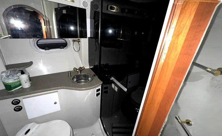 Freshwater / Great Lakes boat since new this vessel features Twin Volvo 8.1-litre Gi 375-hp Gas Inboard Engine's with 643-Hours showing on meters in bilge. Notable features include but are not limited to the following: Air-Conditioning & Heat (1-Unit), Head (Vacuflush) w/Vanity/Sink/Stall-Shower, Central Vacuum System, Kohler 7.3kw Generator (240-Hours), Windlass Anchor w/Forward Pedal-Controls, Complete Electronics Package (VHF Marine Radio, Depth/Speed, New Garmin Radar and New Garmin/GPS/Chartplotter, Raymarine Autopilot, Upgraded Fusion Stereo w/Premium Sound System w/iPod/MP3-Connection, Cockpit Wet Bar w/Sink/Ice-Maker/Refrigerator, Full Camper-Top Canvas Package w/Screens, Mooring Cover and MUCH more!