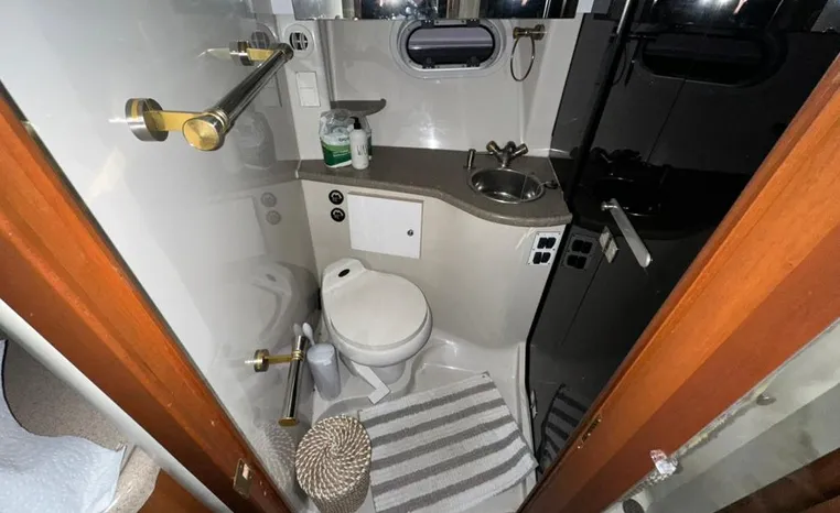 Freshwater / Great Lakes boat since new this vessel features Twin Volvo 8.1-litre Gi 375-hp Gas Inboard Engine's with 643-Hours showing on meters in bilge. Notable features include but are not limited to the following: Air-Conditioning & Heat (1-Unit), Head (Vacuflush) w/Vanity/Sink/Stall-Shower, Central Vacuum System, Kohler 7.3kw Generator (240-Hours), Windlass Anchor w/Forward Pedal-Controls, Complete Electronics Package (VHF Marine Radio, Depth/Speed, New Garmin Radar and New Garmin/GPS/Chartplotter, Raymarine Autopilot, Upgraded Fusion Stereo w/Premium Sound System w/iPod/MP3-Connection, Cockpit Wet Bar w/Sink/Ice-Maker/Refrigerator, Full Camper-Top Canvas Package w/Screens, Mooring Cover and MUCH more!