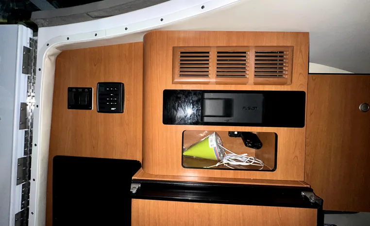 Freshwater / Great Lakes boat since new this vessel features Twin Volvo 8.1-litre Gi 375-hp Gas Inboard Engine's with 643-Hours showing on meters in bilge. Notable features include but are not limited to the following: Air-Conditioning & Heat (1-Unit), Head (Vacuflush) w/Vanity/Sink/Stall-Shower, Central Vacuum System, Kohler 7.3kw Generator (240-Hours), Windlass Anchor w/Forward Pedal-Controls, Complete Electronics Package (VHF Marine Radio, Depth/Speed, New Garmin Radar and New Garmin/GPS/Chartplotter, Raymarine Autopilot, Upgraded Fusion Stereo w/Premium Sound System w/iPod/MP3-Connection, Cockpit Wet Bar w/Sink/Ice-Maker/Refrigerator, Full Camper-Top Canvas Package w/Screens, Mooring Cover and MUCH more!