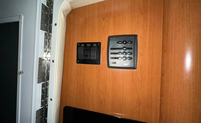 Freshwater / Great Lakes boat since new this vessel features Twin Volvo 8.1-litre Gi 375-hp Gas Inboard Engine's with 643-Hours showing on meters in bilge. Notable features include but are not limited to the following: Air-Conditioning & Heat (1-Unit), Head (Vacuflush) w/Vanity/Sink/Stall-Shower, Central Vacuum System, Kohler 7.3kw Generator (240-Hours), Windlass Anchor w/Forward Pedal-Controls, Complete Electronics Package (VHF Marine Radio, Depth/Speed, New Garmin Radar and New Garmin/GPS/Chartplotter, Raymarine Autopilot, Upgraded Fusion Stereo w/Premium Sound System w/iPod/MP3-Connection, Cockpit Wet Bar w/Sink/Ice-Maker/Refrigerator, Full Camper-Top Canvas Package w/Screens, Mooring Cover and MUCH more!